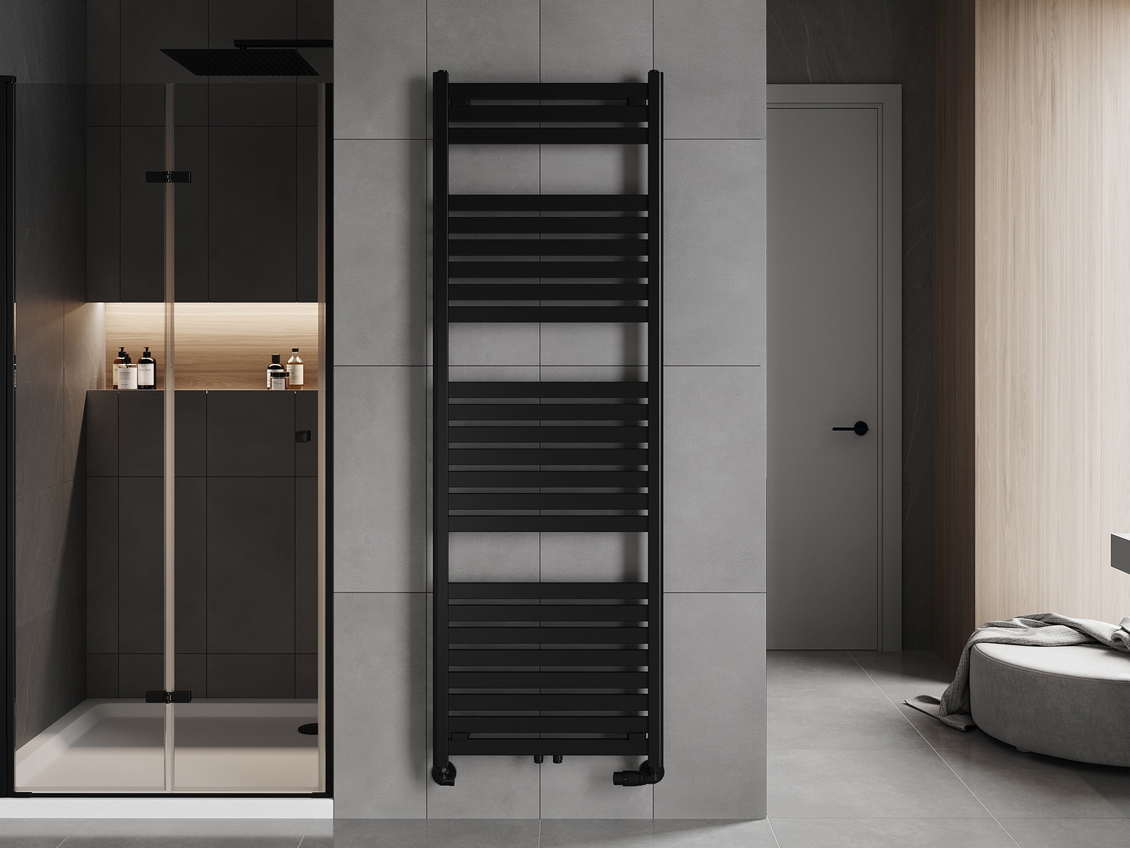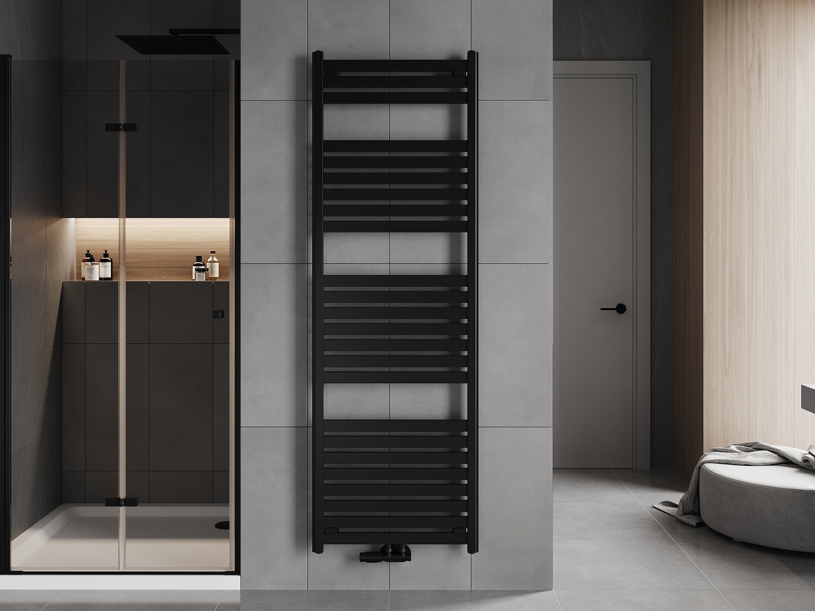 Mexen Uran è un elegante termosifone da bagno con dimensioni di 1800 x 600 mm, che garantisce un'eccellente efficienza termica di 934 W. Il colore nero RAL 9005 e la solida struttura in acciaio gli conferiscono un aspetto elegante e durabilità. Grazie alla possibilità di montare una resistenza, alle connessioni versatili e al rivestimento di alta qualità resistente alla corrosione, il prodotto è altamente funzionale e facile da installare. La temperatura di esercizio massima è di 95 °C e il prodotto viene fornito con un set di montaggio completo.