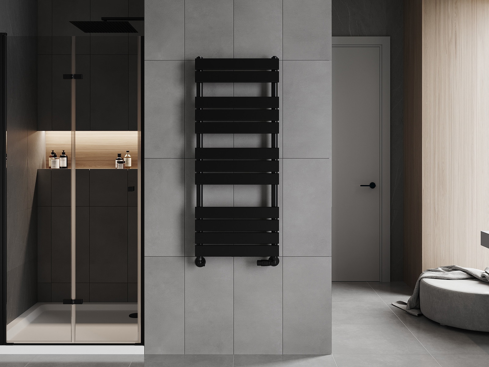 Il radiatore da bagno Mexen Ceres offre un'eccellente combinazione di eleganza e funzionalità. Con un'altezza di 1200 mm e una larghezza di 500 mm, si adatta perfettamente a qualsiasi bagno. La potenza termica efficiente di 610 W garantisce comfort termico, mentre la struttura in acciaio e il rivestimento nero RAL 9005 assicurano durata e resistenza alla corrosione. La possibilità di montare una resistenza e il supporto per un'ampia gamma di connessioni lo rendono estremamente versatile. La temperatura massima di lavoro è di 95 °C e la pressione fino a 0,3 MPa assicurano affidabilità. Il radiatore pesa 13,90 kg e ha una reazione al fuoco A1. Il set include sospensioni, kit di montaggio, tappi di chiusura e valvola di sfiato.