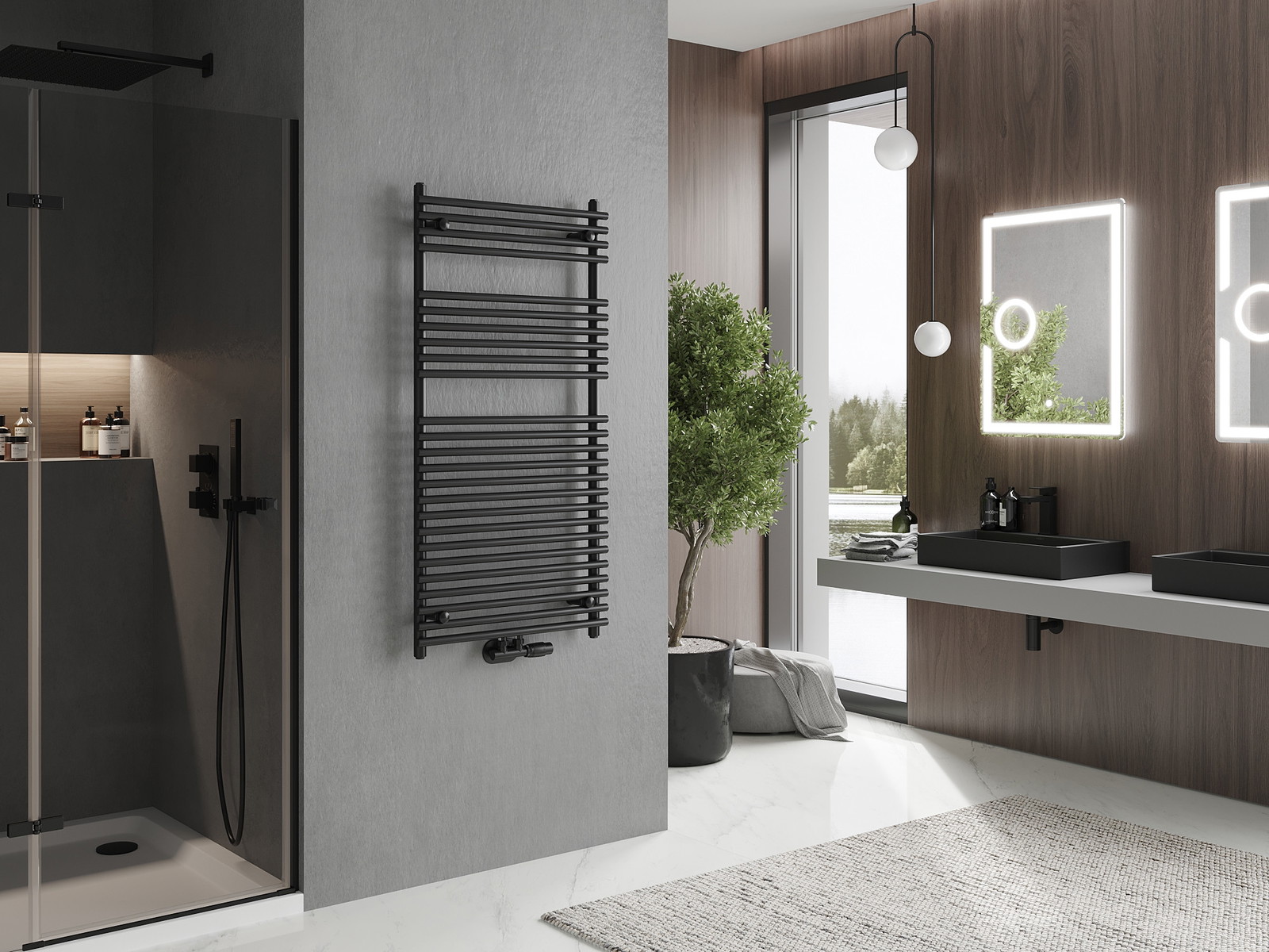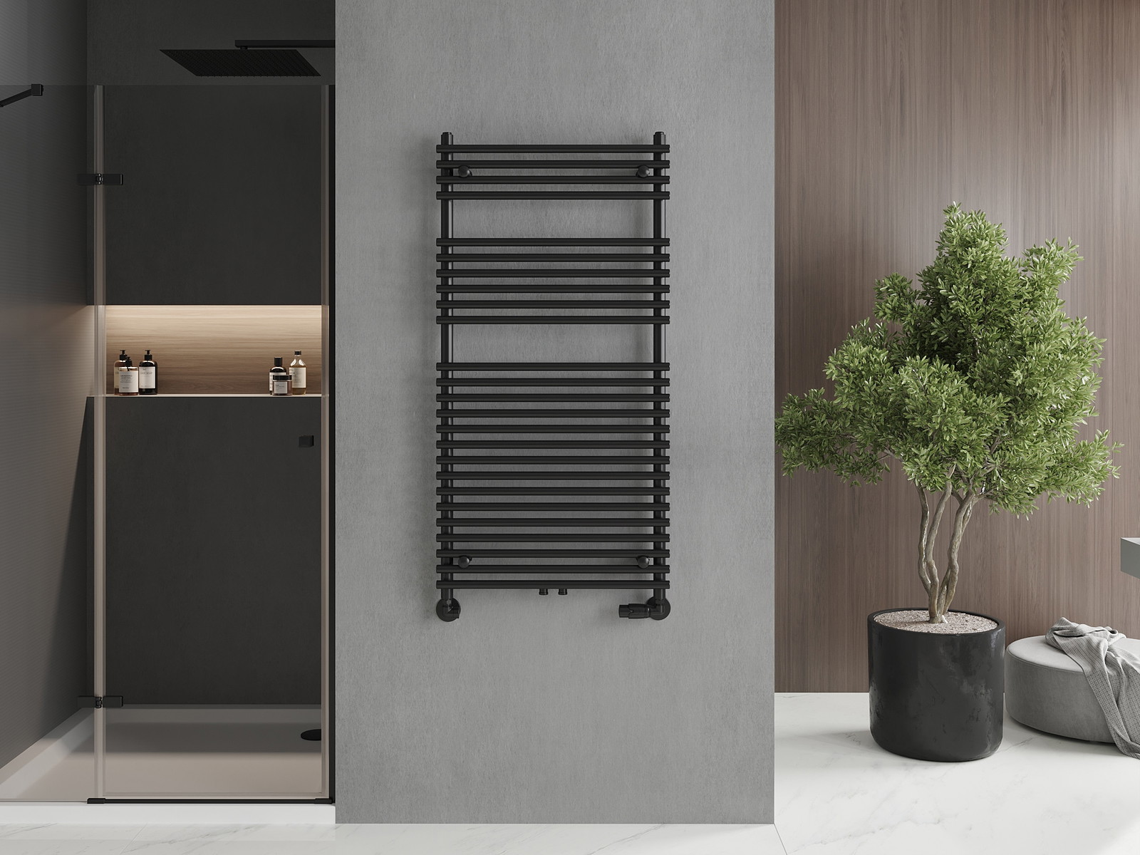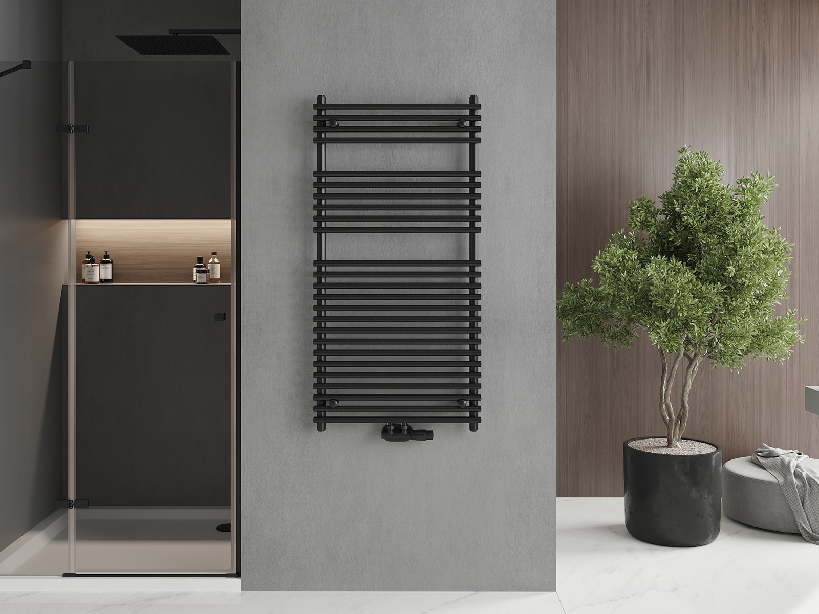 Mexen Sol è un elegante e funzionale radiatore da bagno, perfetto per qualsiasi bagno moderno. Le sue dimensioni sono 1200 x 600 mm, con una potenza termica di 658 W, garantendo un riscaldamento rapido ed efficiente. Realizzato in acciaio di alta qualità con rivestimento laccato nero RAL 9005, resistente alla corrosione. Dispone di collegamenti inferiori e centrali, possibilità di montare una resistenza e kit di montaggio incluso. La temperatura operativa massima è di 95°C, e la pressione di esercizio arriva a 0,6 Mpa.