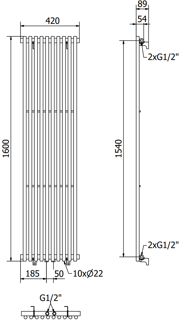 - 2xG ½″ centrale