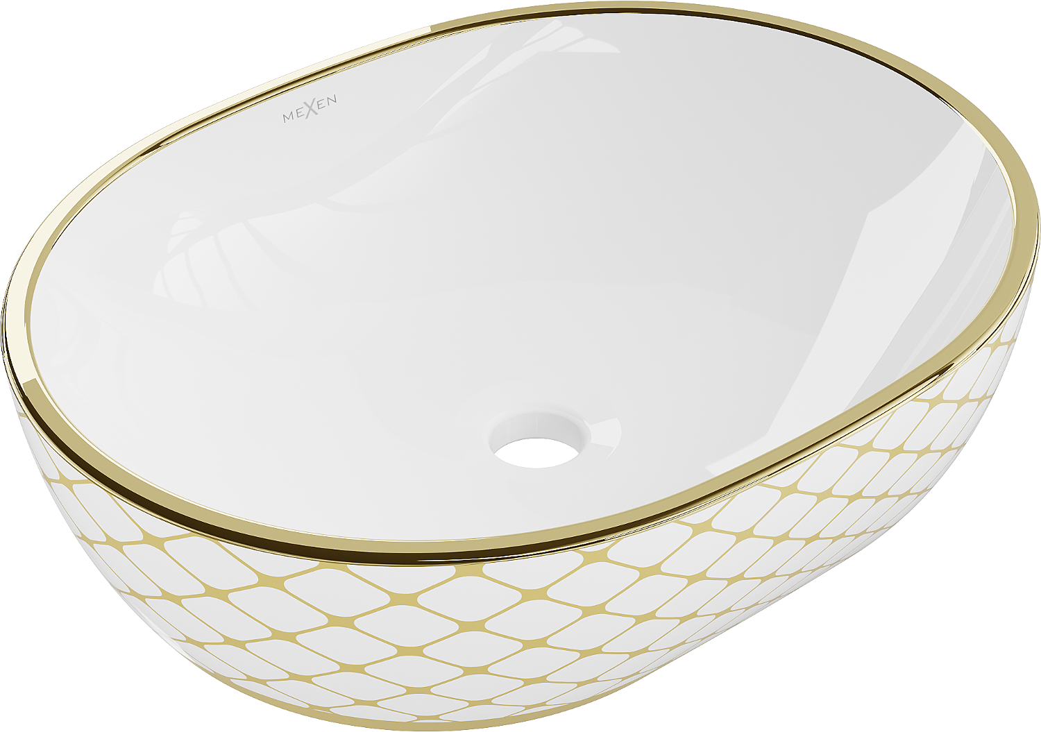 Mexen Viki lavabo da appoggio 48 x 35 cm, bianco/oro motivo a griglia - 21054809
