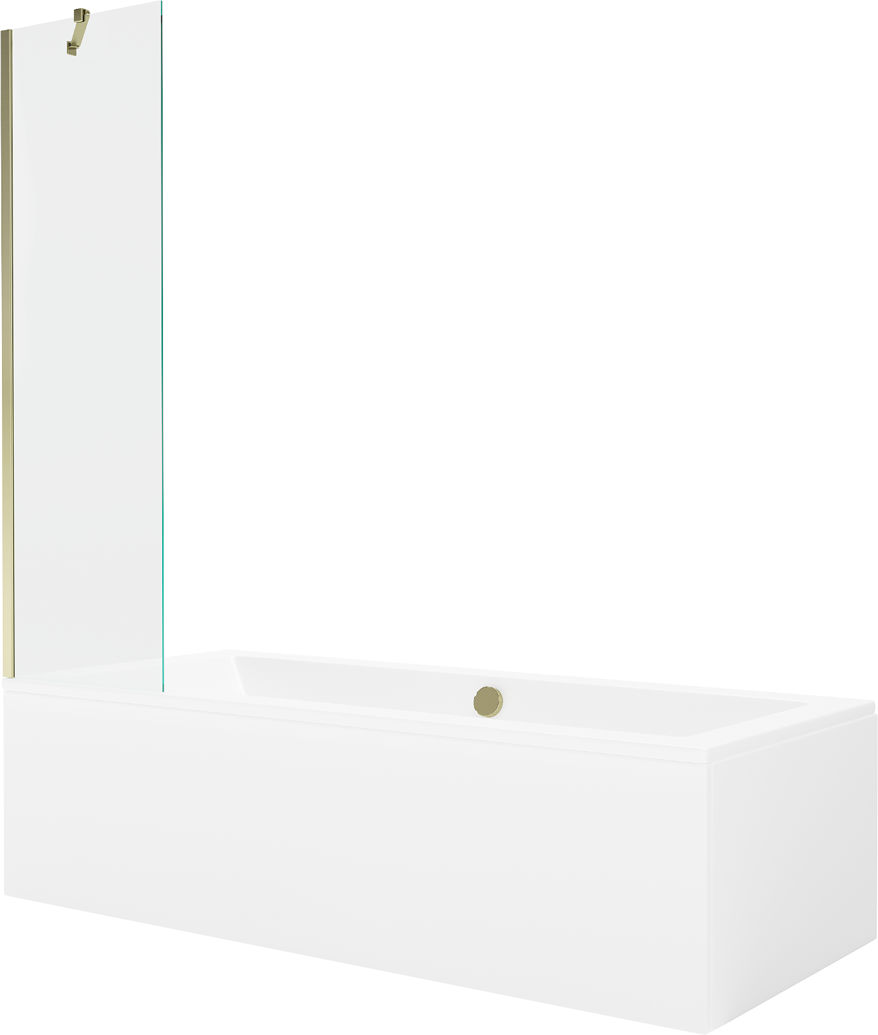 Mexen Cube vasca rettangolare 170 x 80 cm con pannello e paravento a 1 anta 50 cm, trasparente, oro - 550517080X9505000050