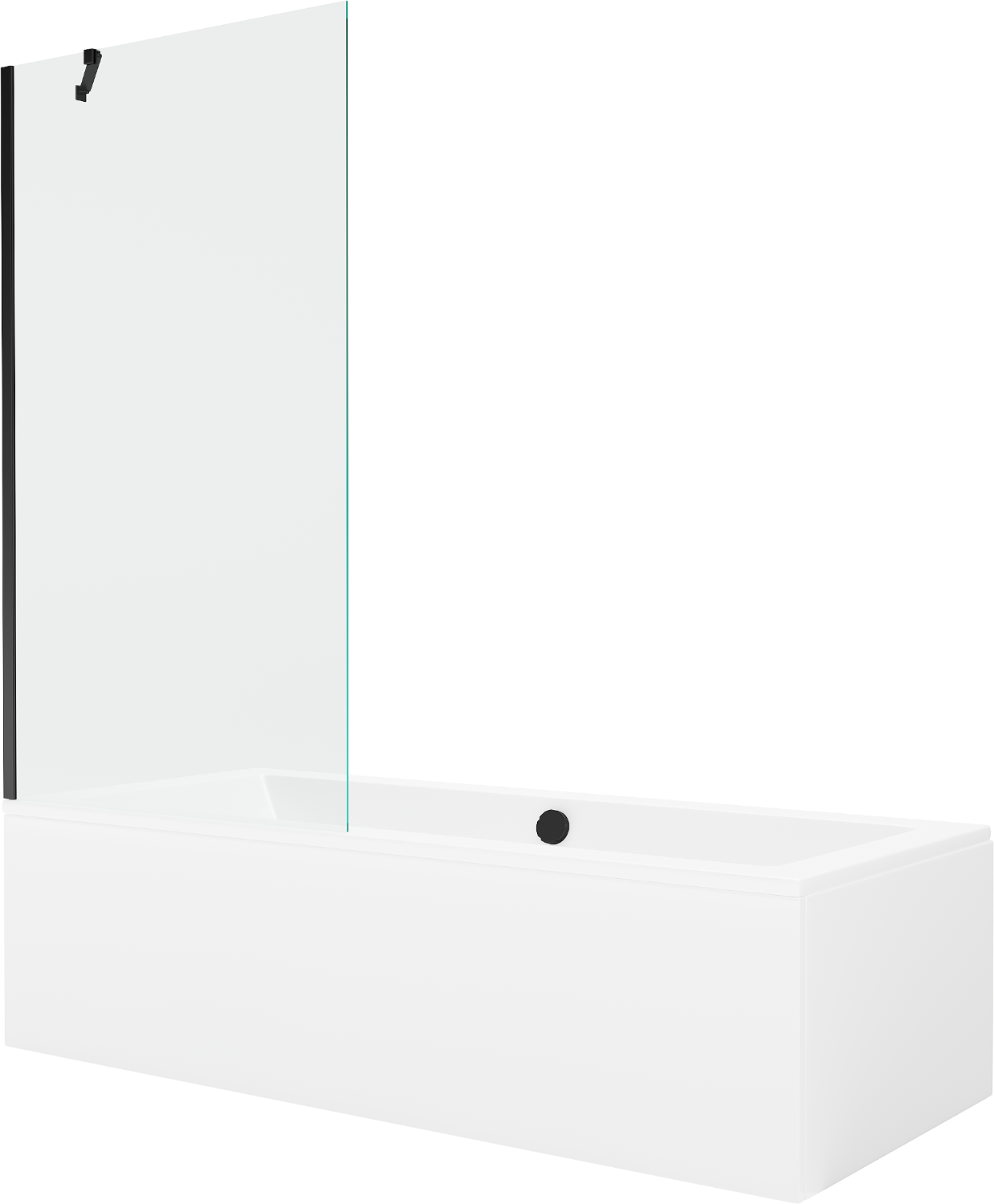 Mexen Cube vasca da bagno rettangolare 170 x 80 cm con pannello e paravento ad 1 anta 90 cm, trasparente, nero