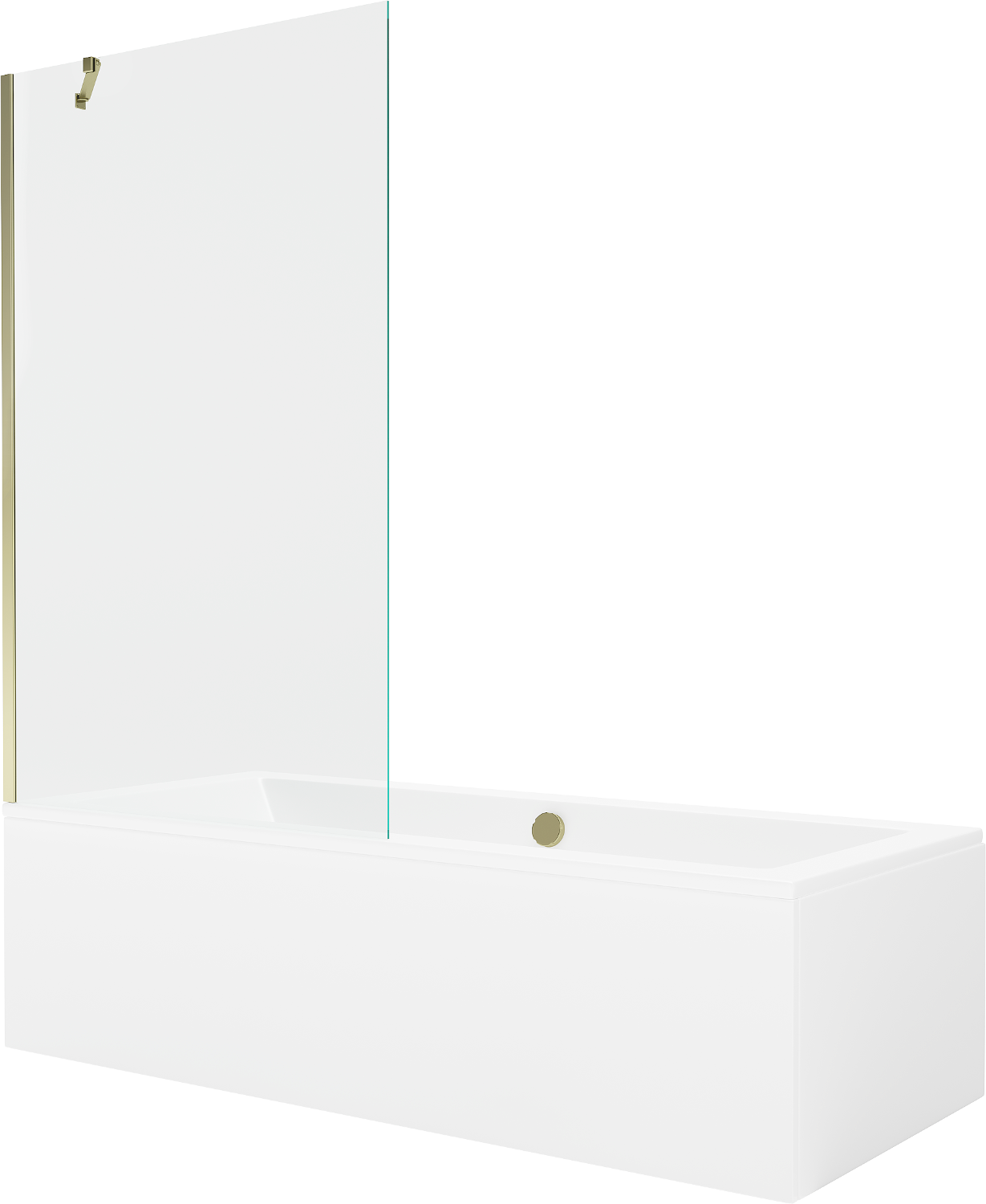 Mexen Cube vasca rettangolare 180 x 80 cm con pannello e paravento a 1 anta 100 cm, trasparente, oro - 550518080X9510000050