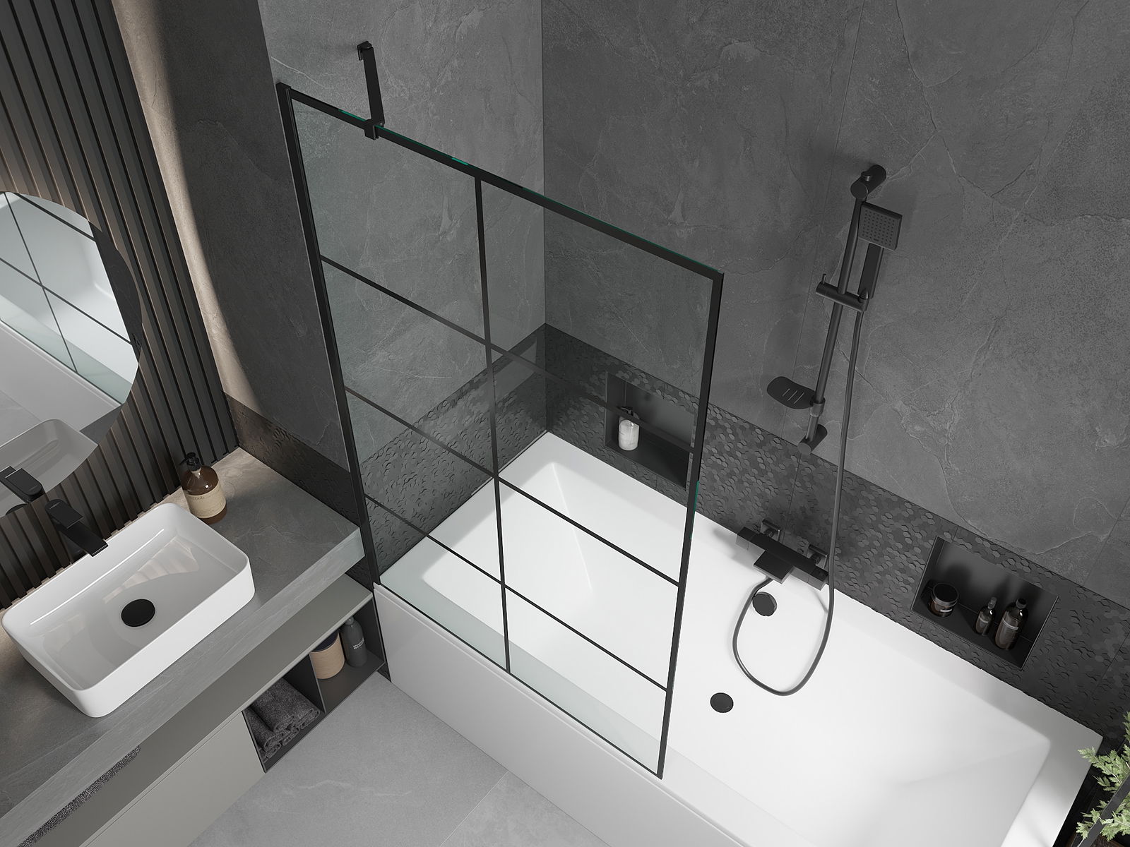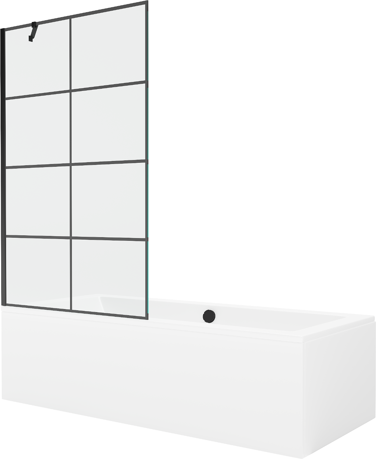 Mexen Cube vasca rettangolare 180 x 80 cm con rivestimento e paravento a 1 anta 100 cm, motivo nero - 550518080X9510007077