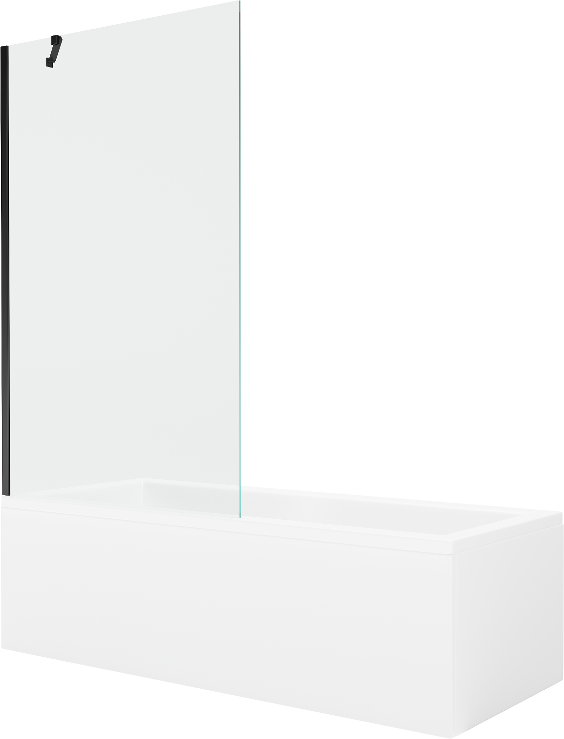 Mexen Cubik vasca da bagno rettangolare 150 x 70 cm con pannello e paravento a 1 anta 100 cm, trasparente, nero