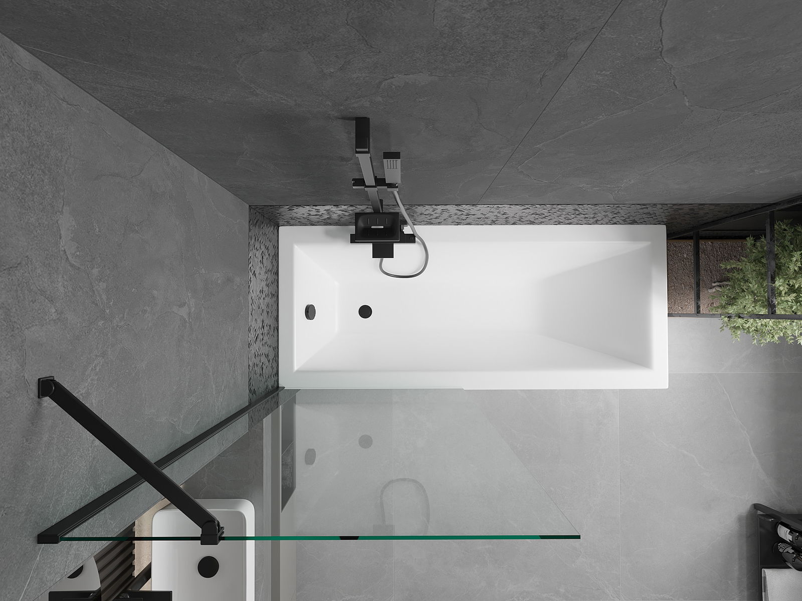 Mexen Cubik vasca rettangolare 160 x 70 cm con struttura e paravento a 1 anta 80 cm, trasparente, nero - 550316070X9508000070