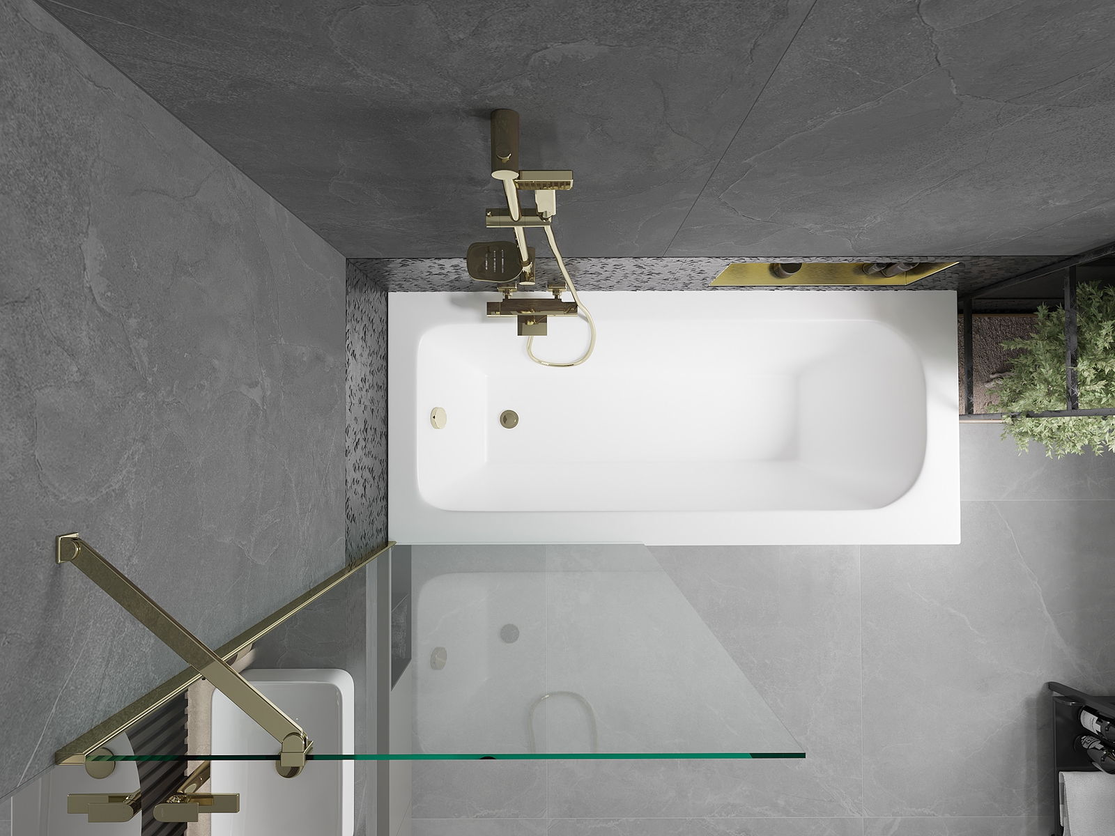 Mexen Vega vasca da bagno rettangolare 160 x 70 cm con rivestimento e schermo pieghevole a 1 anta 80 cm, trasparente, dorato