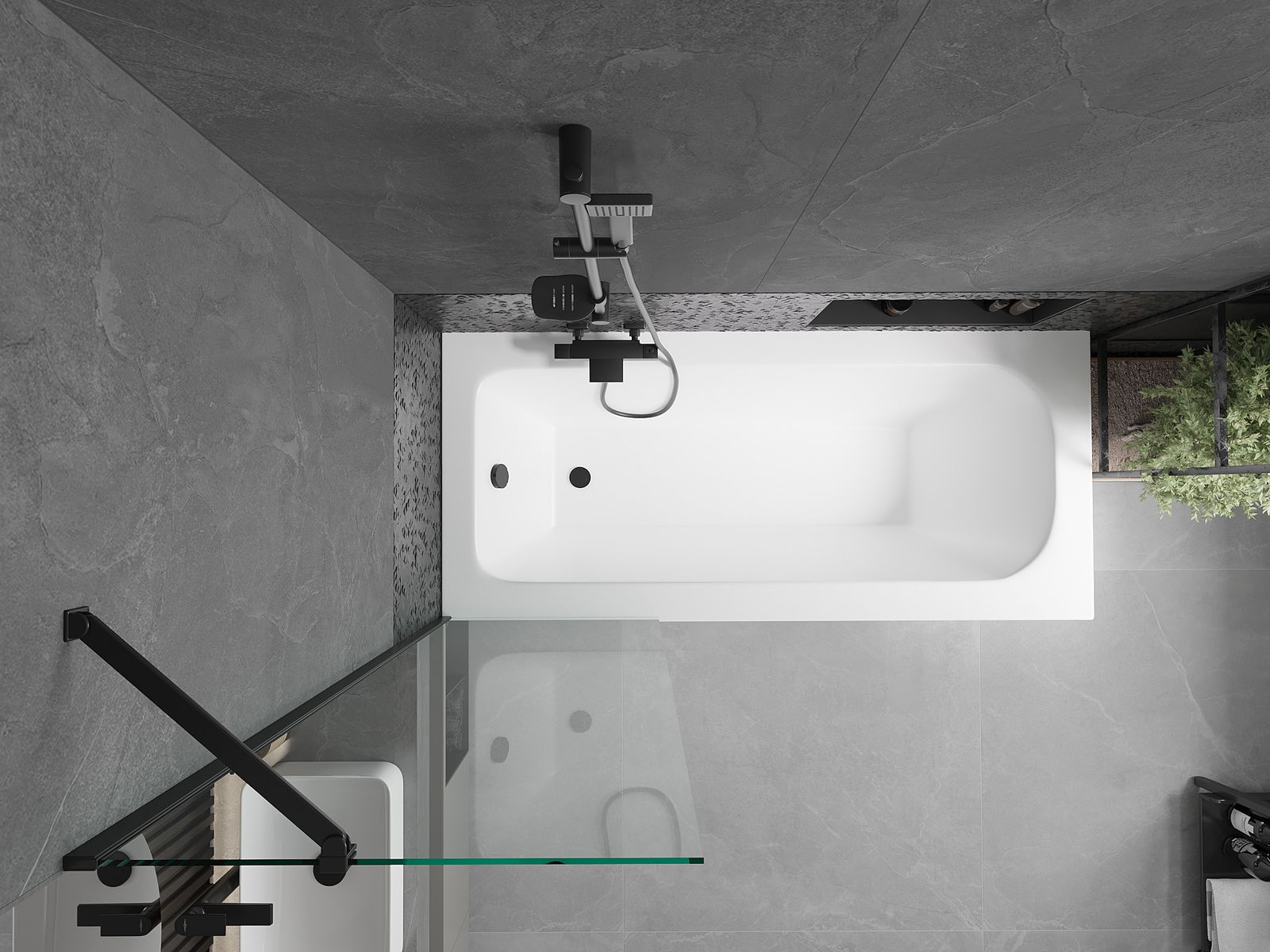 Mexen Vega vasca rettangolare 180 x 80 cm con rivestimento e paravento a 1 anta 60 cm, trasparente, nero - 550118080X9506000070