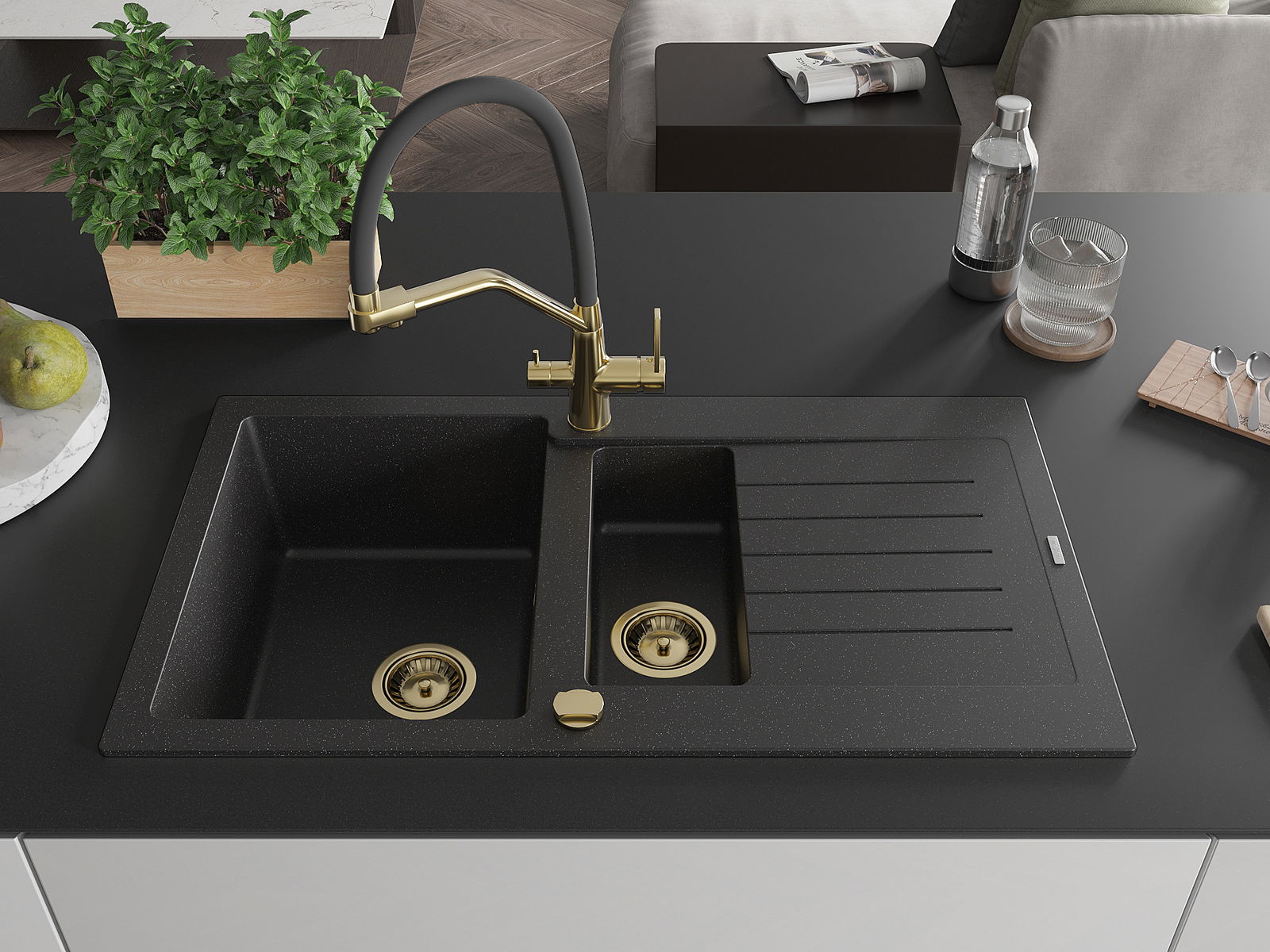 La scelta di un lavello con sgocciolatoio è una soluzione pratica che consente di riporre piatti, verdure e frutta lavati. Lo sgocciolatoio facilita la cucina quotidiana e aiuta a mantenere l'ordine in cucina.