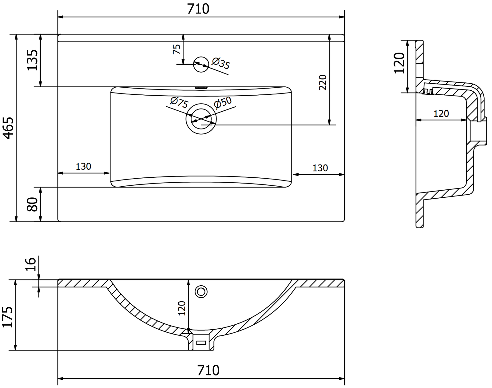 Il foro di troppopieno è chiamato "foro di sicurezza". È da lì che fuoriesce l'eccesso di acqua, impedendo in questo modo che l'acqua trabocchi oltre il bordo del prodotto quando lo scarico inferiore è chiuso. È una soluzione molto sicura e pratica.