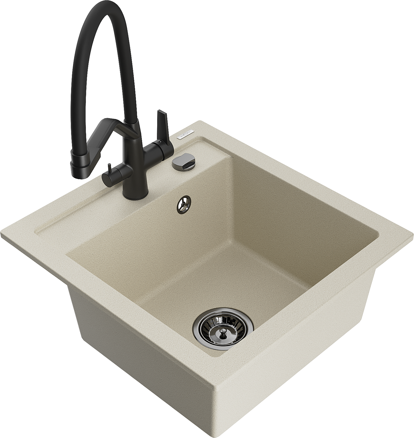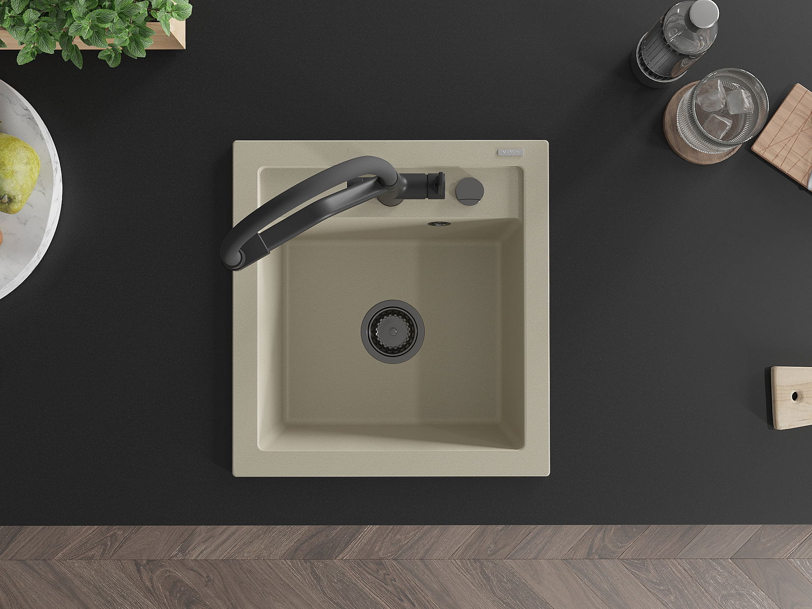 Mexen Vito lavello da cucina in granito a 1 vasca con miscelatore Duo, beige - 6503-69-671701-70-B