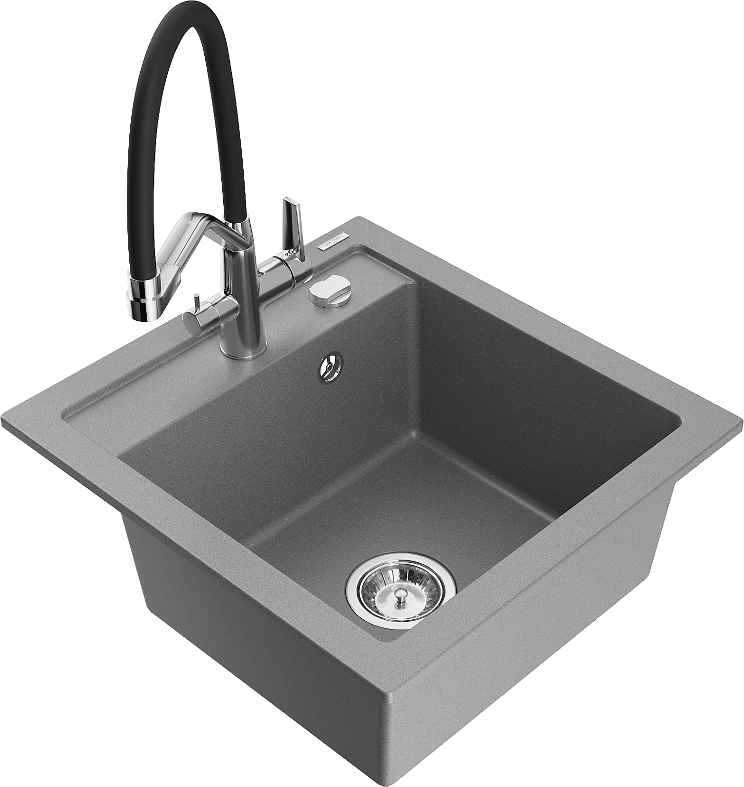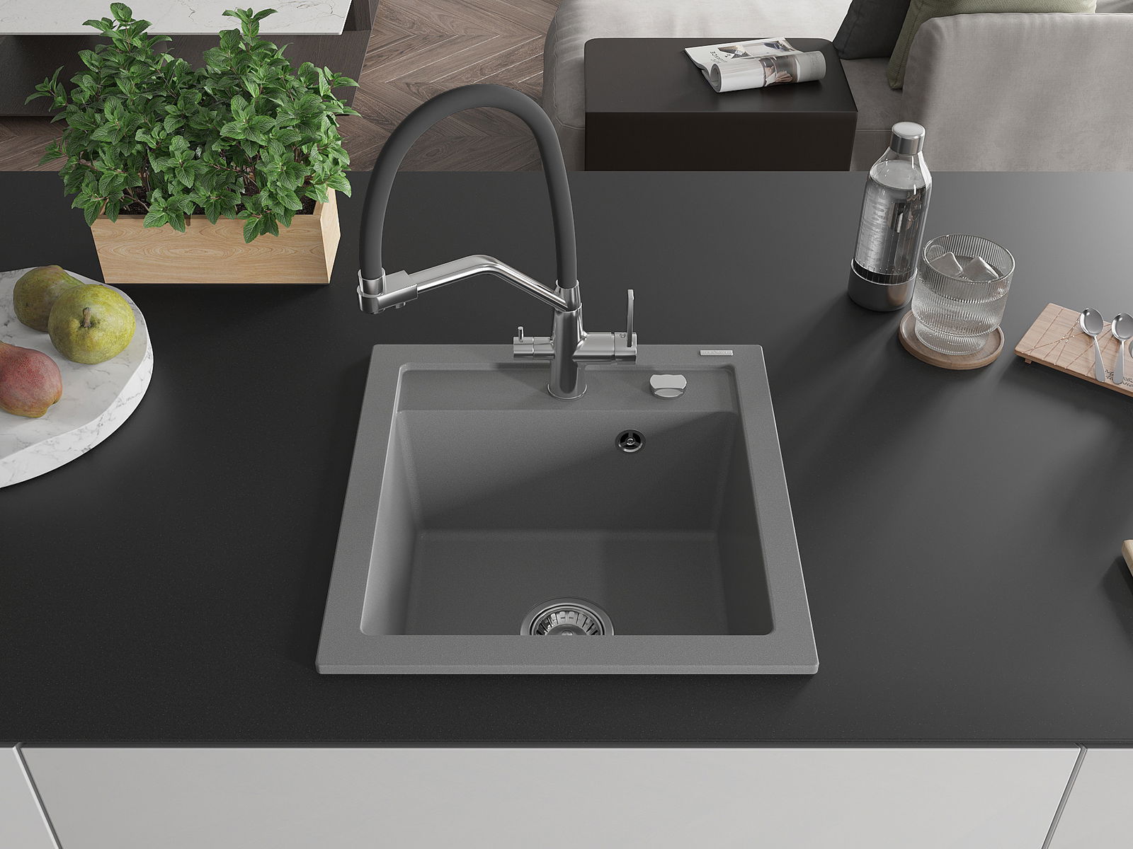Mexen Vito lavello in granito 1-vasca con rubinetto da cucina Duo, grigio - 6503-71-671701-07