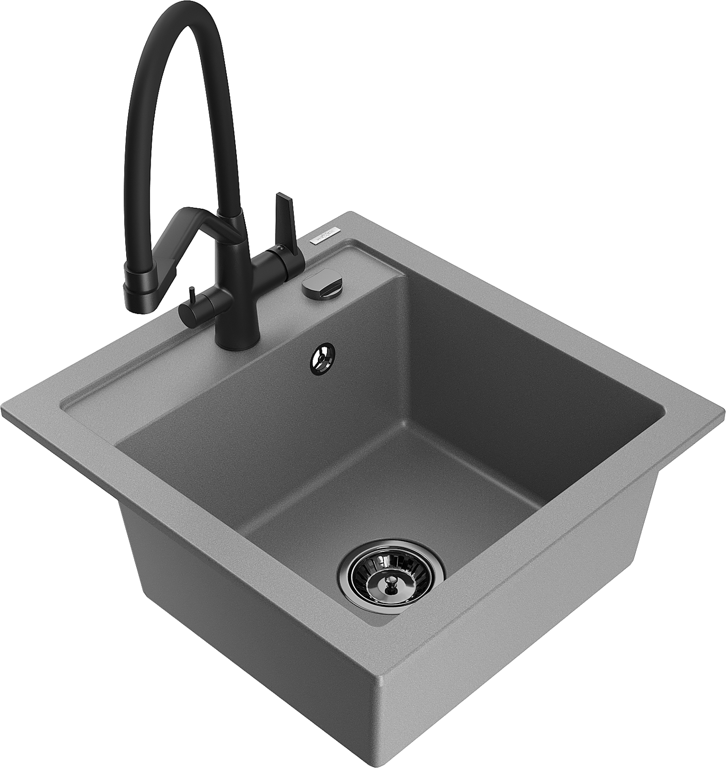 Mexen Vito lavello in granito ad 1 vasca con miscelatore cucina Duo, grigio - 6503-71-671701-70-B