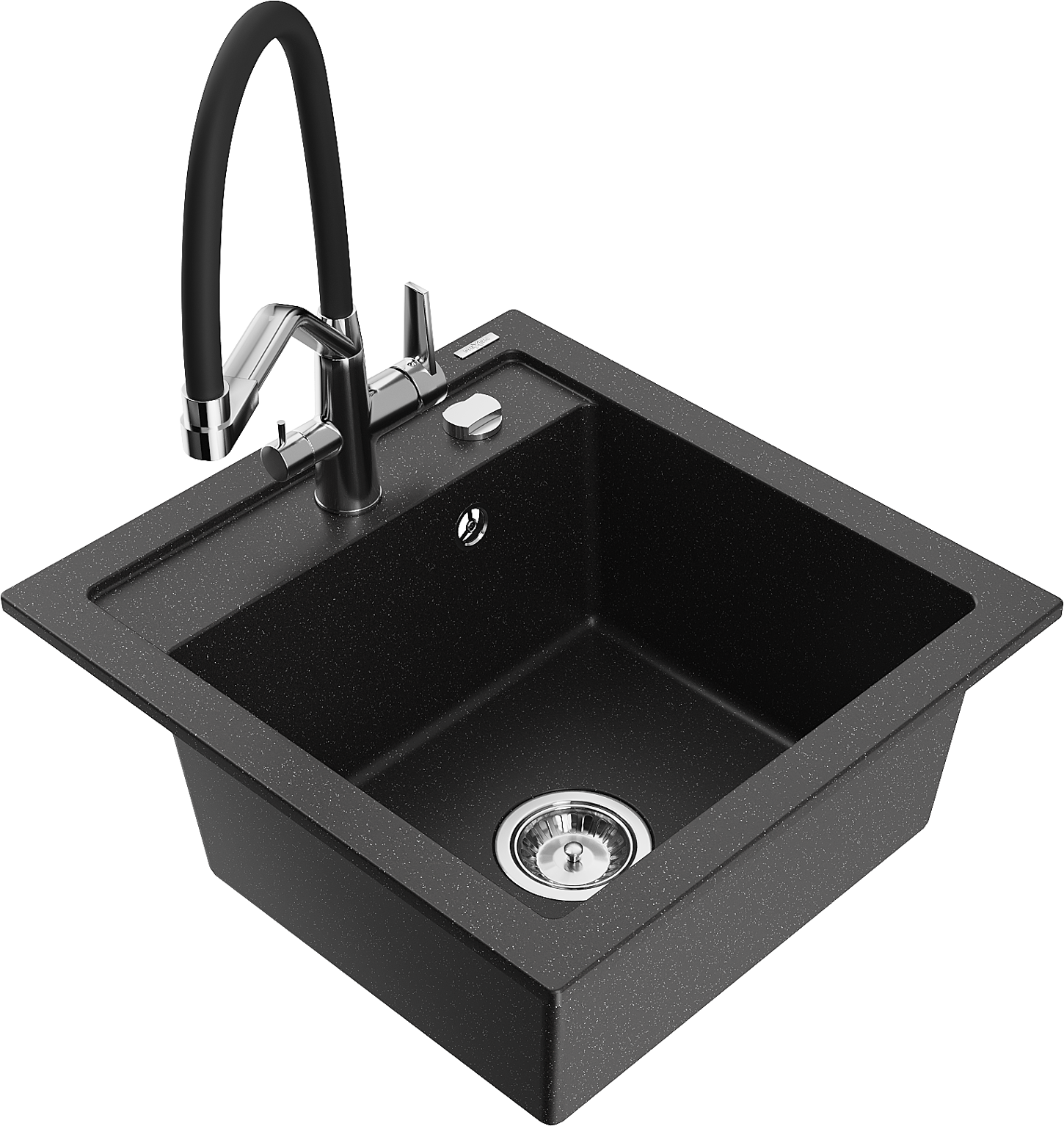 Mexen Vito lavello in granito a 1 vasca con miscelatore da cucina Duo, nero/argento metallizzato - 6503-73-671701-07
