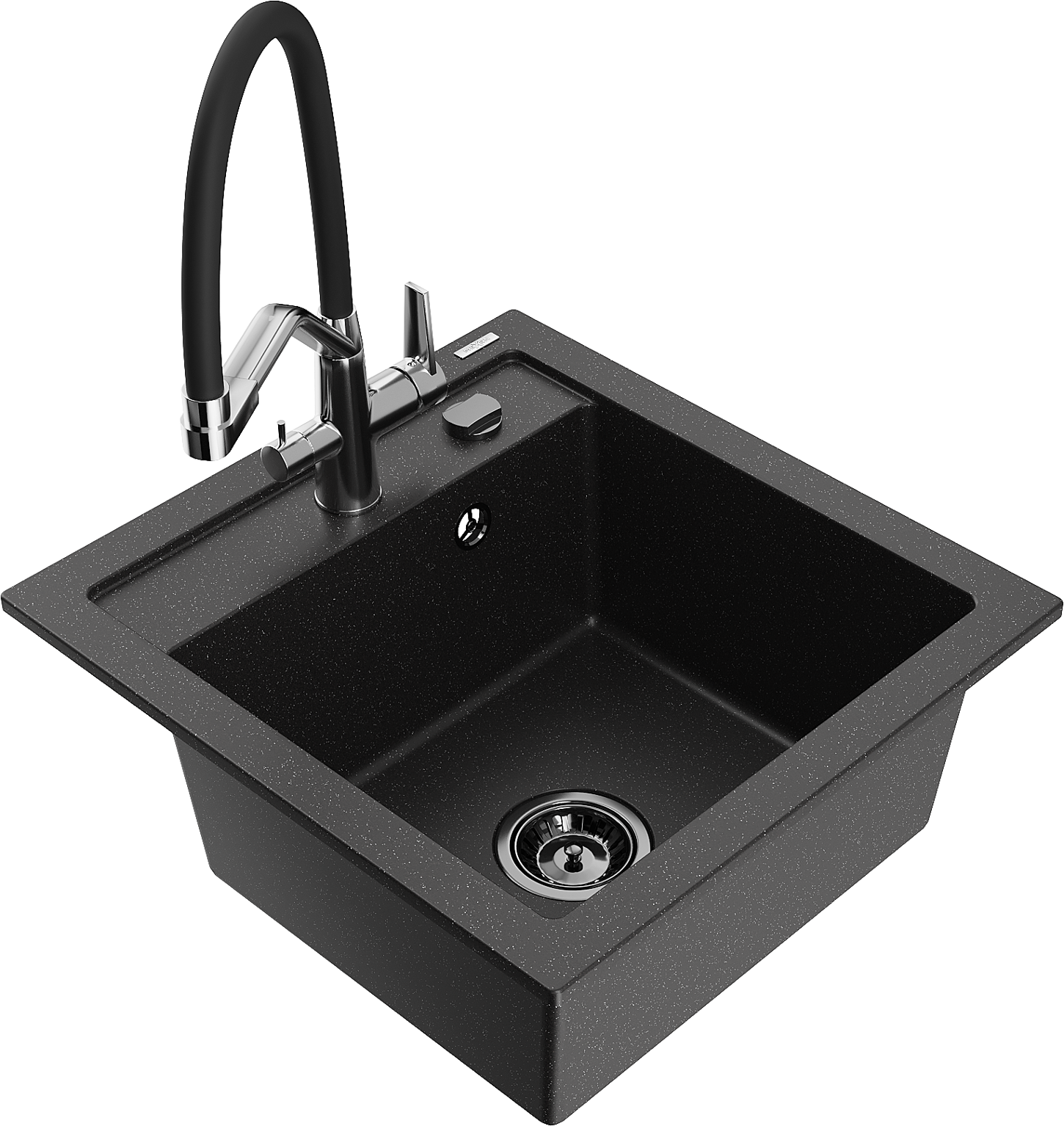 Mexen Vito lavello da cucina in granito a 1 vasca con miscelatore Duo, nero/argento metallico - 6503-73-671701-07-B