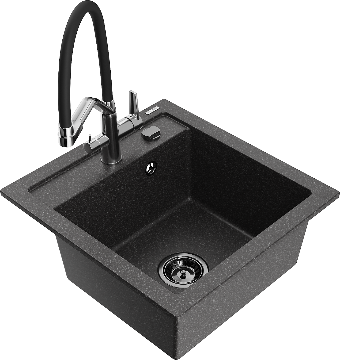 Mexen Vito lavello da cucina in granito 1-vasca con rubinetto Duo, nero maculato - 6503-76-671701-07-B