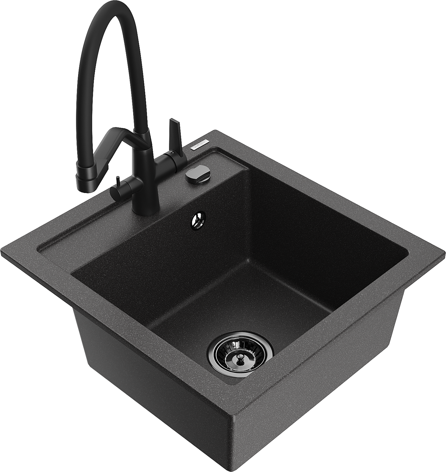 Mexen Vito lavello in granito a 1 vasca con rubinetto da cucina Duo, nero screziato - 6503-76-671701-70-B