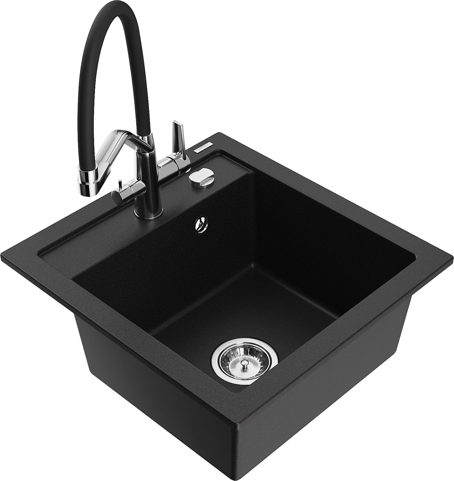 Mexen Vito lavello in granito a 1 vasca con miscelatore cucina Duo, nero - 6503-77-671701-07