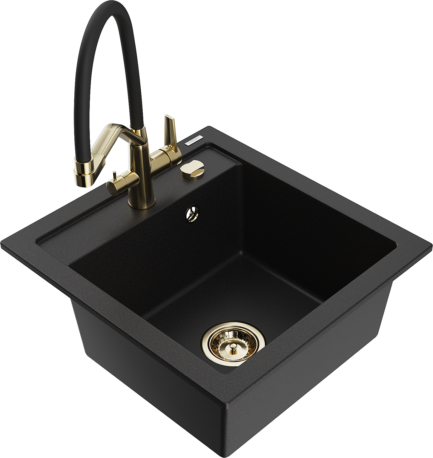 Mexen Vito lavello in granito 1-vasca con rubinetto da cucina Duo, nero - 6503-77-671701-57-G