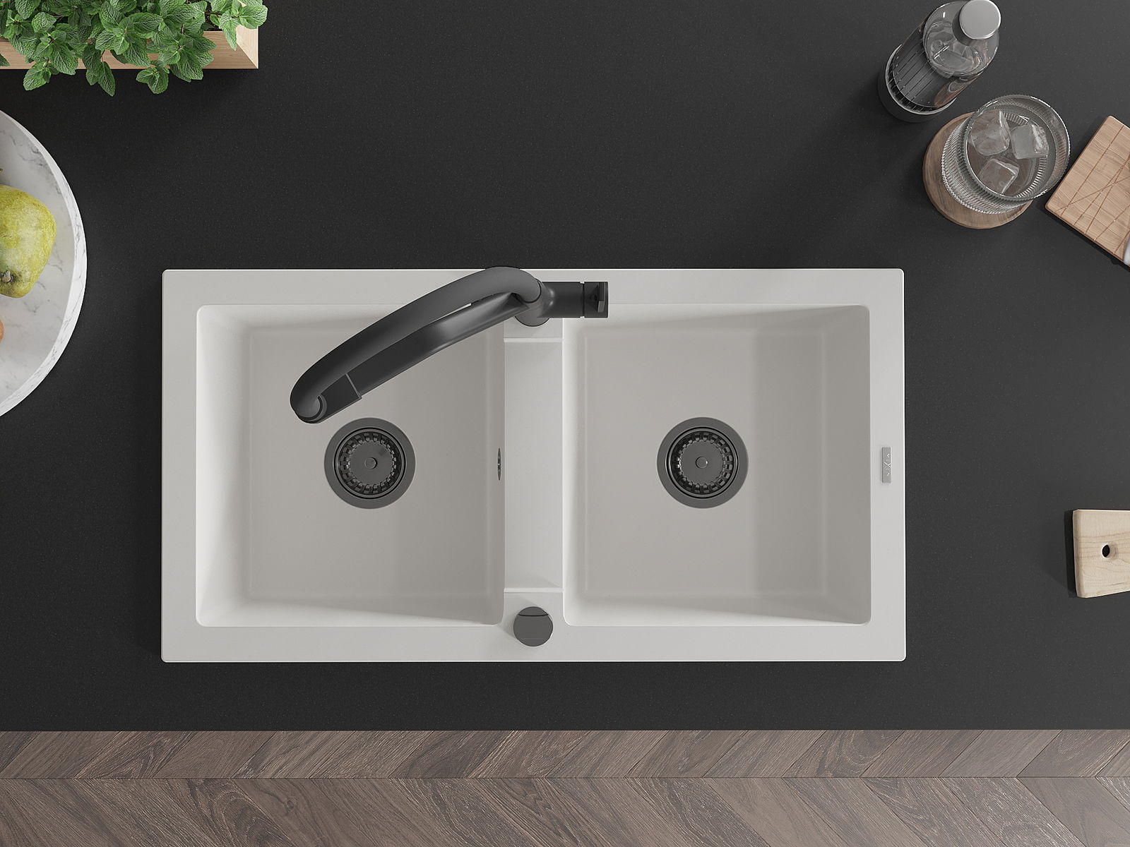 Mexen Mario lavello in granito a 2 vasche con rubinetto da cucina Duo, bianco - 6504-20-671701-70-B