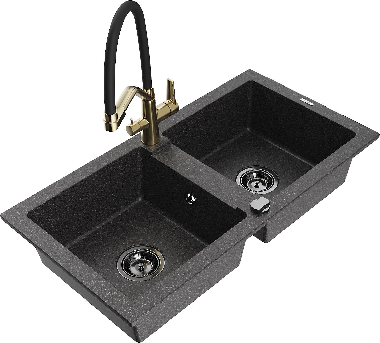 Mexen Mario lavello da cucina in granito a 2 vasche con miscelatore Duo, nero punteggiato - 6504-76-671701-57-B