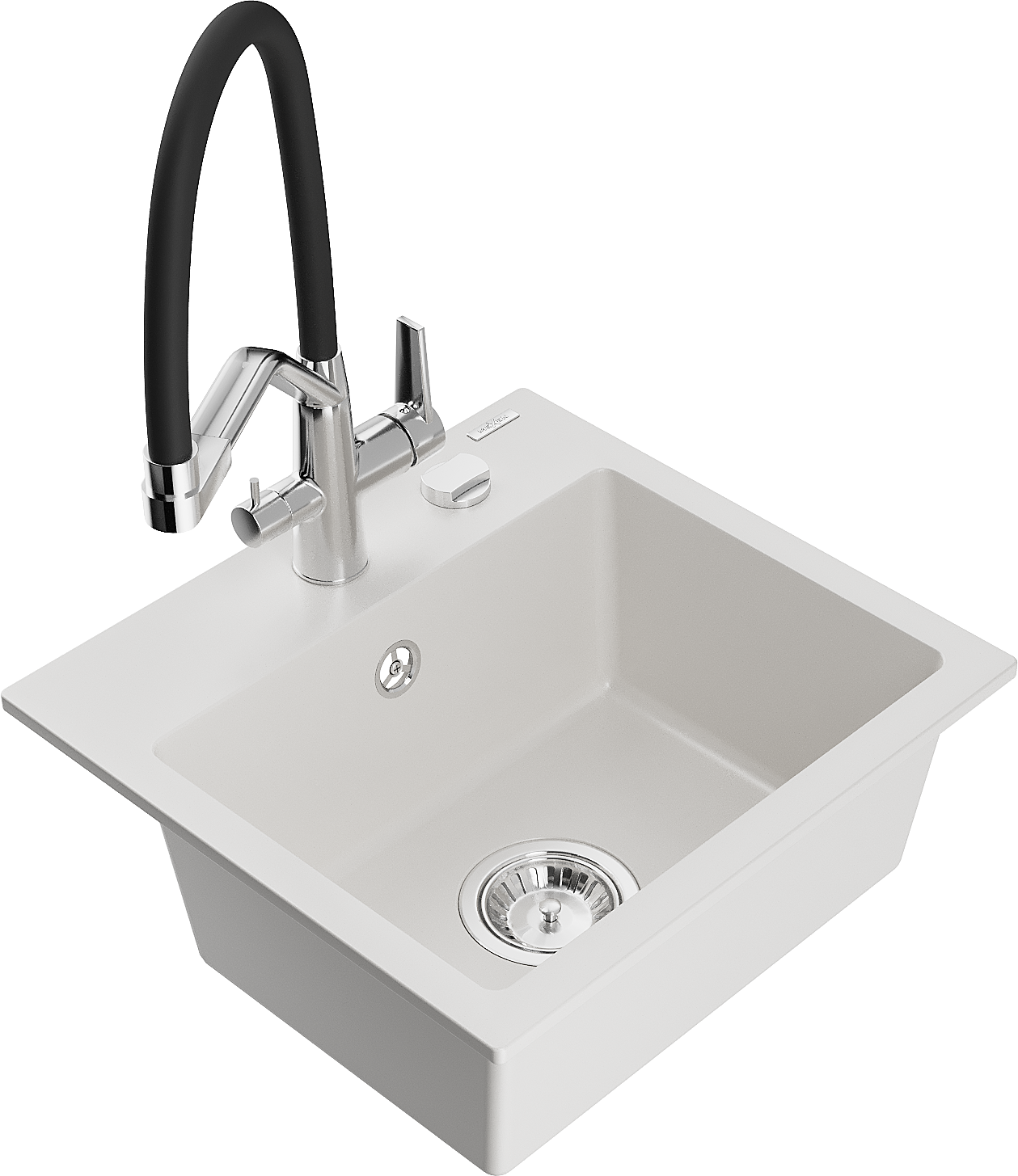 Mexen Milo lavello in granito a 1 vasca con miscelatore da cucina Duo, bianco - 6505-20-671701-07