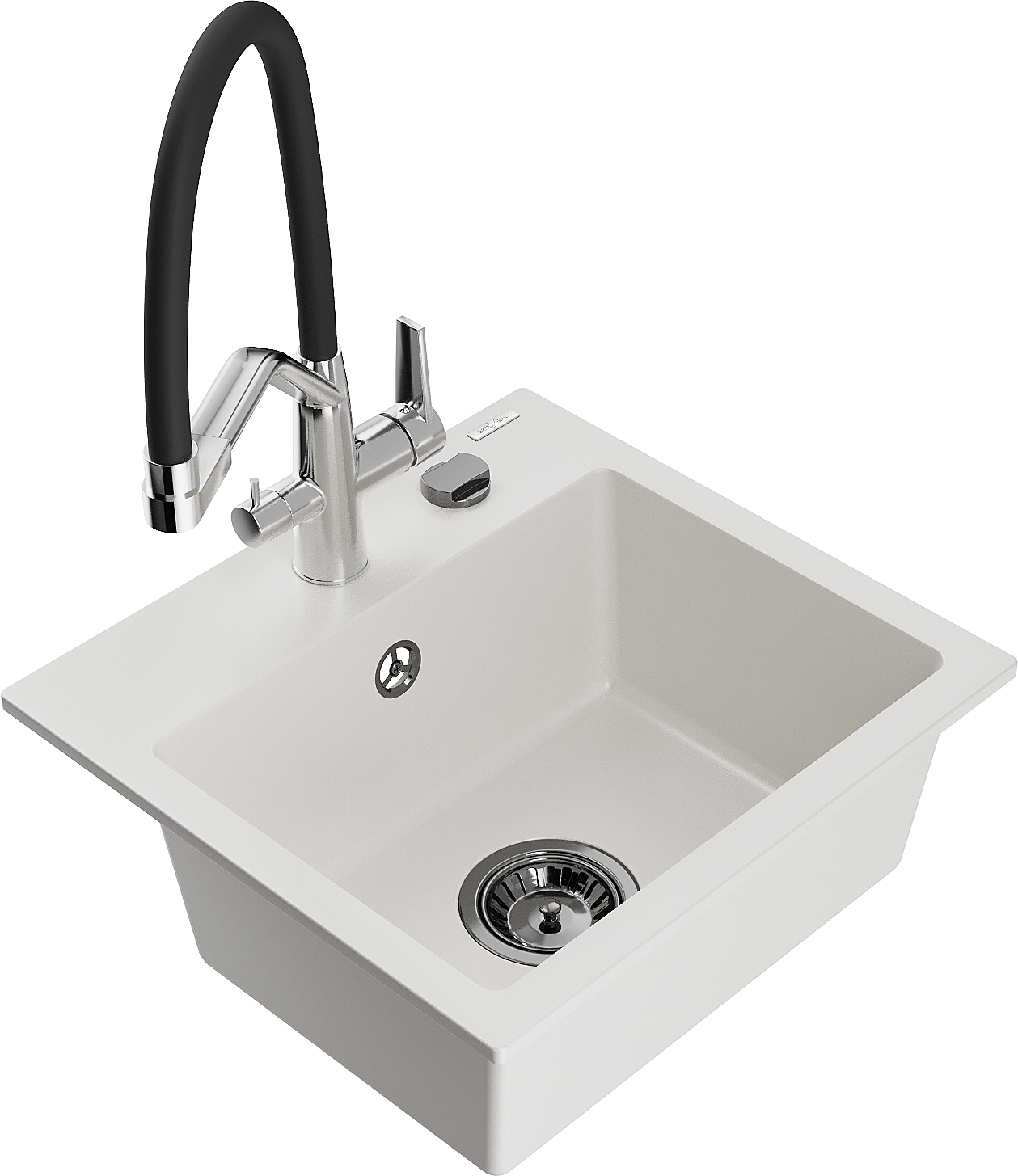 Mexen Milo lavello in granito a 1 vasca con rubinetto da cucina Duo, bianco - 6505-20-671701-07-B
