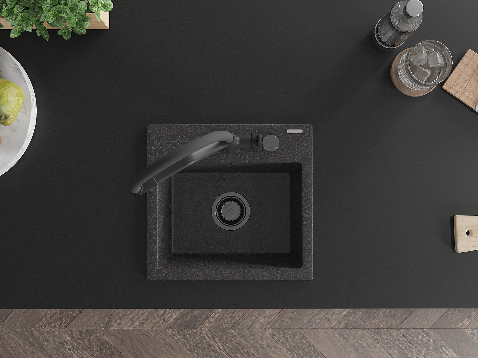 Mexen Milo lavello da cucina in granito con 1 vasca e rubinetto Duo, nero maculato - 6505-76-671701-70-B