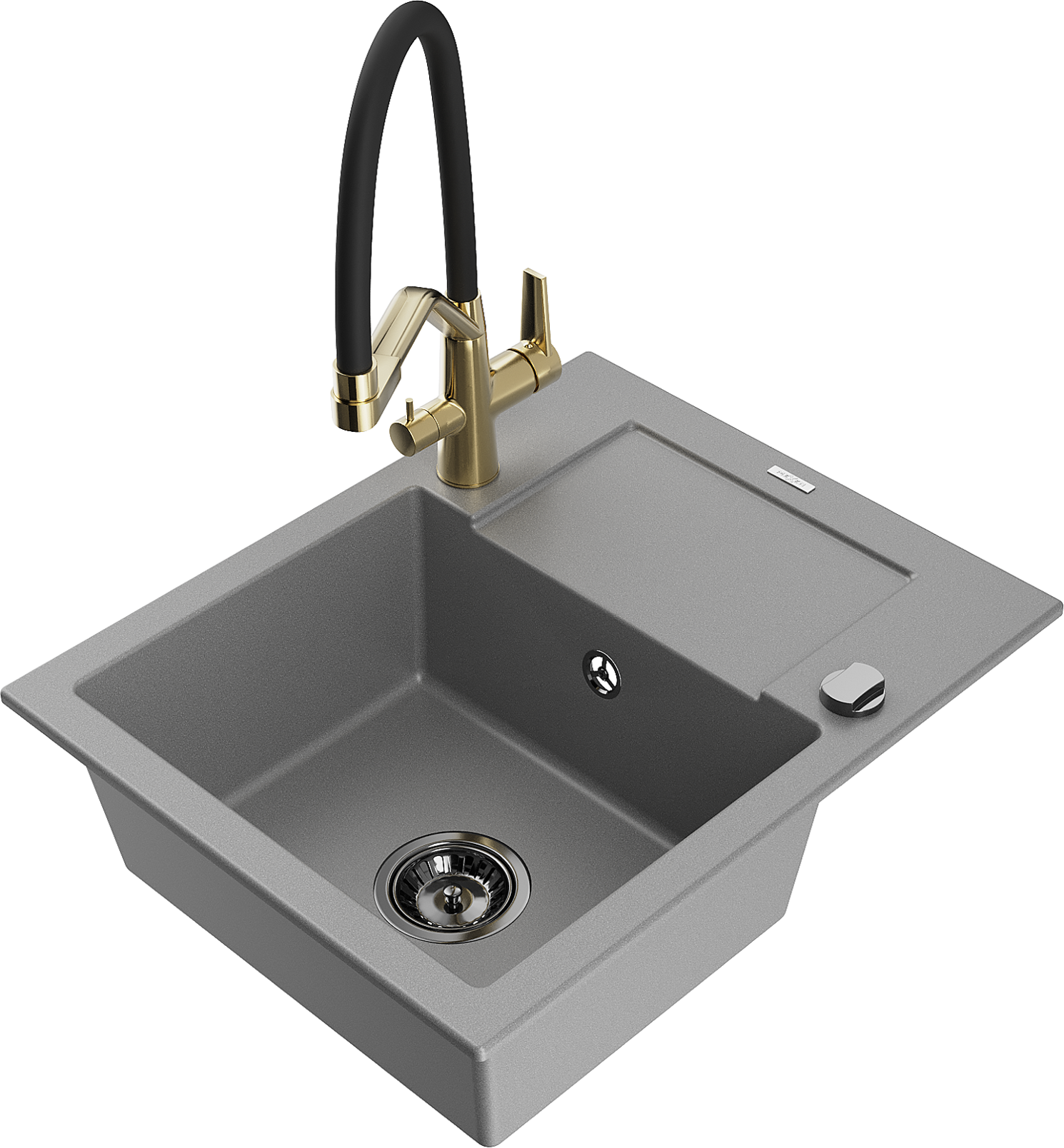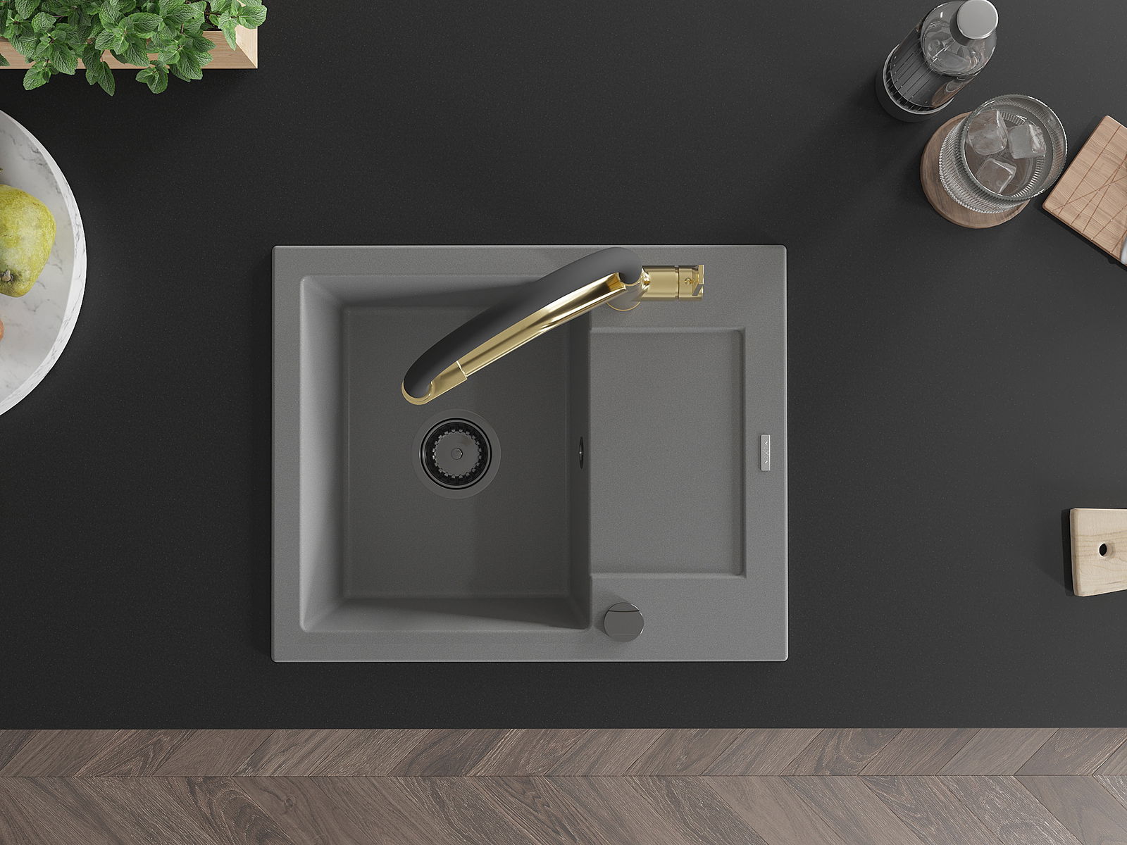 Mexen Enzo lavello da cucina in granito 1-vasca con scolapiatti e rubinetto Duo, grigio - 6506-71-671701-57-B