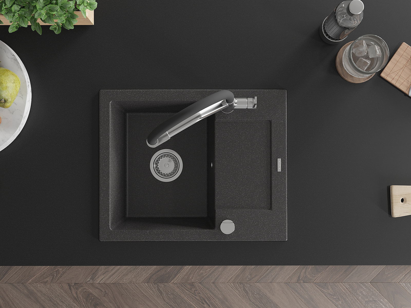 Il lavello è realizzato in granito di alta qualità. Rappresenta un complemento elegante e, soprattutto, pratico per ogni cucina, indipendentemente dal suo stile. L'alta qualità e la durata del granito garantiscono un utilizzo che dura per molti anni.