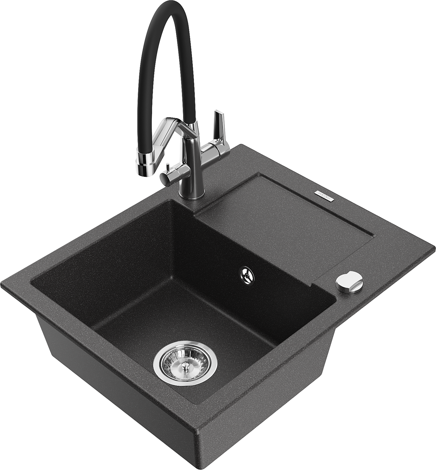 Mexen Enzo lavello da cucina in granito a 1 vasca con gocciolatoio e rubinetto Duo, nero maculato - 6506-76-671701-07