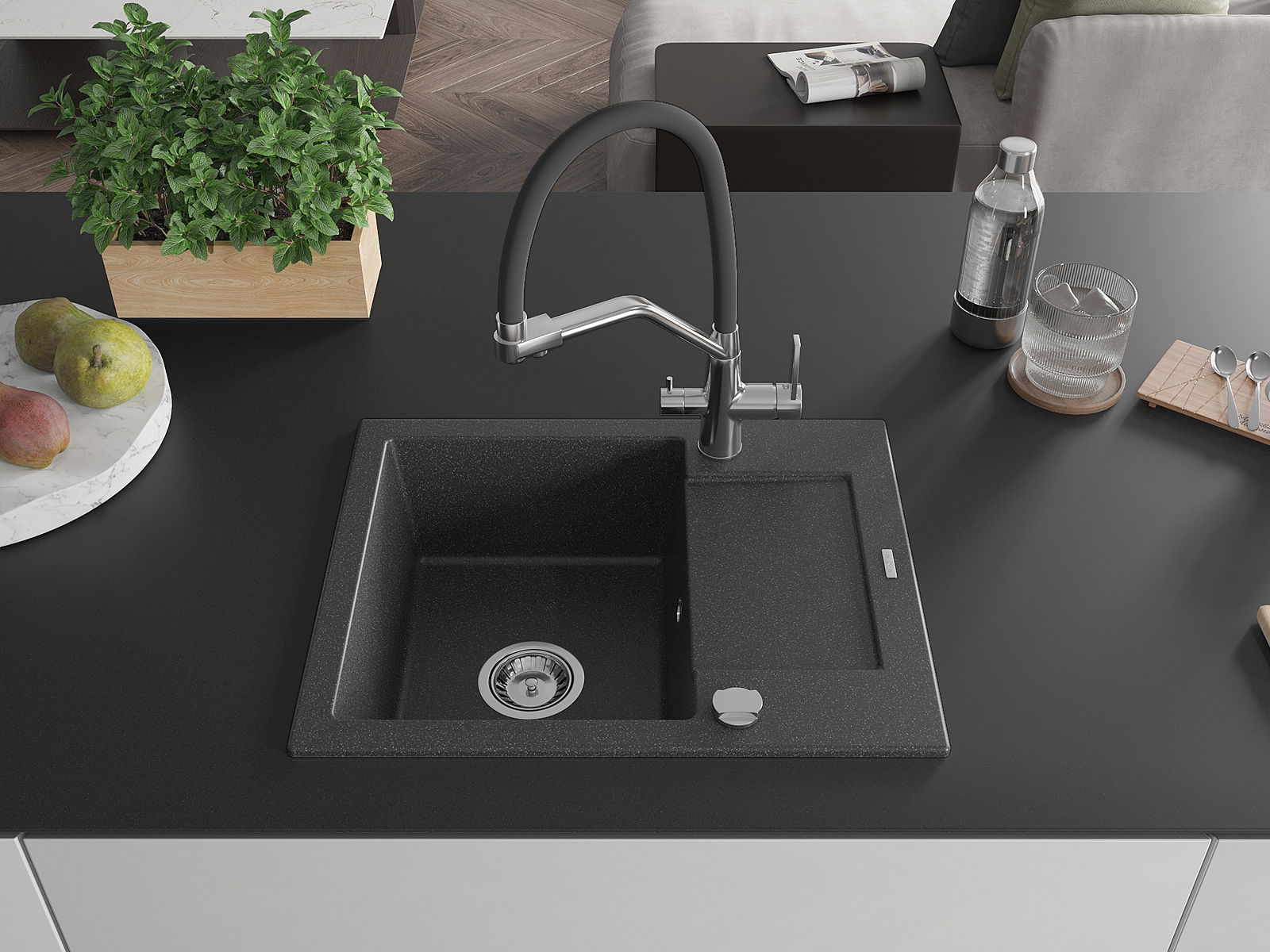 La scelta di un lavello con sgocciolatoio è una soluzione pratica che consente di riporre piatti, verdure e frutta lavati. Lo sgocciolatoio facilita la cucina quotidiana e aiuta a mantenere l'ordine in cucina.