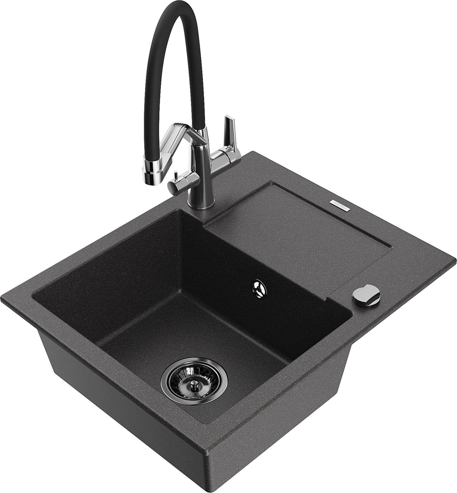 Mexen Enzo lavello in granito a 1 vasca con sgocciolatoio e rubinetto cucina Duo, nero maculato - 6506-76-671701-07-B