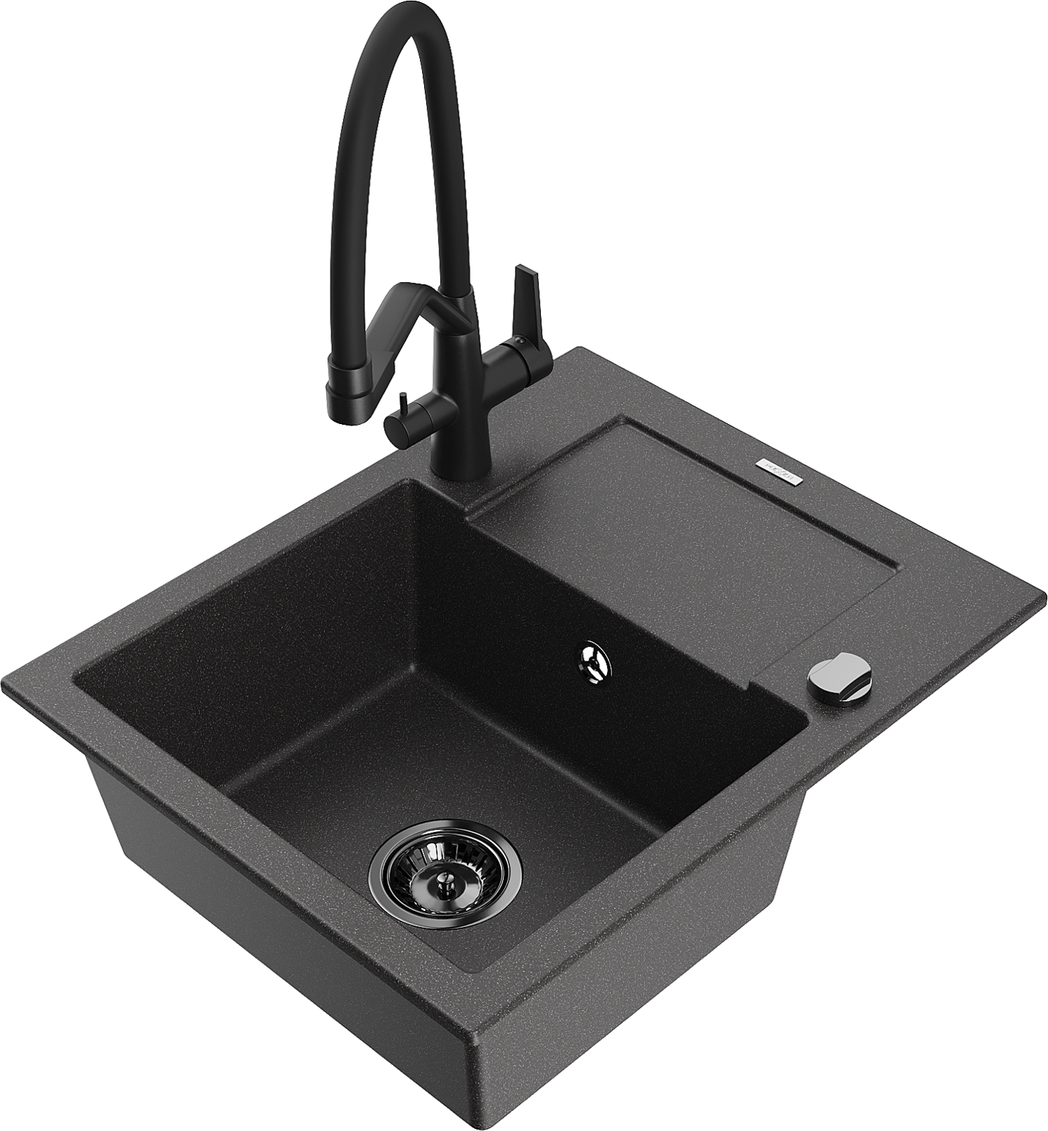 Mexen Enzo lavello da cucina in granito a 1 vasca con scolapiatti e miscelatore Duo, nero maculato - 6506-76-671701-70-B
