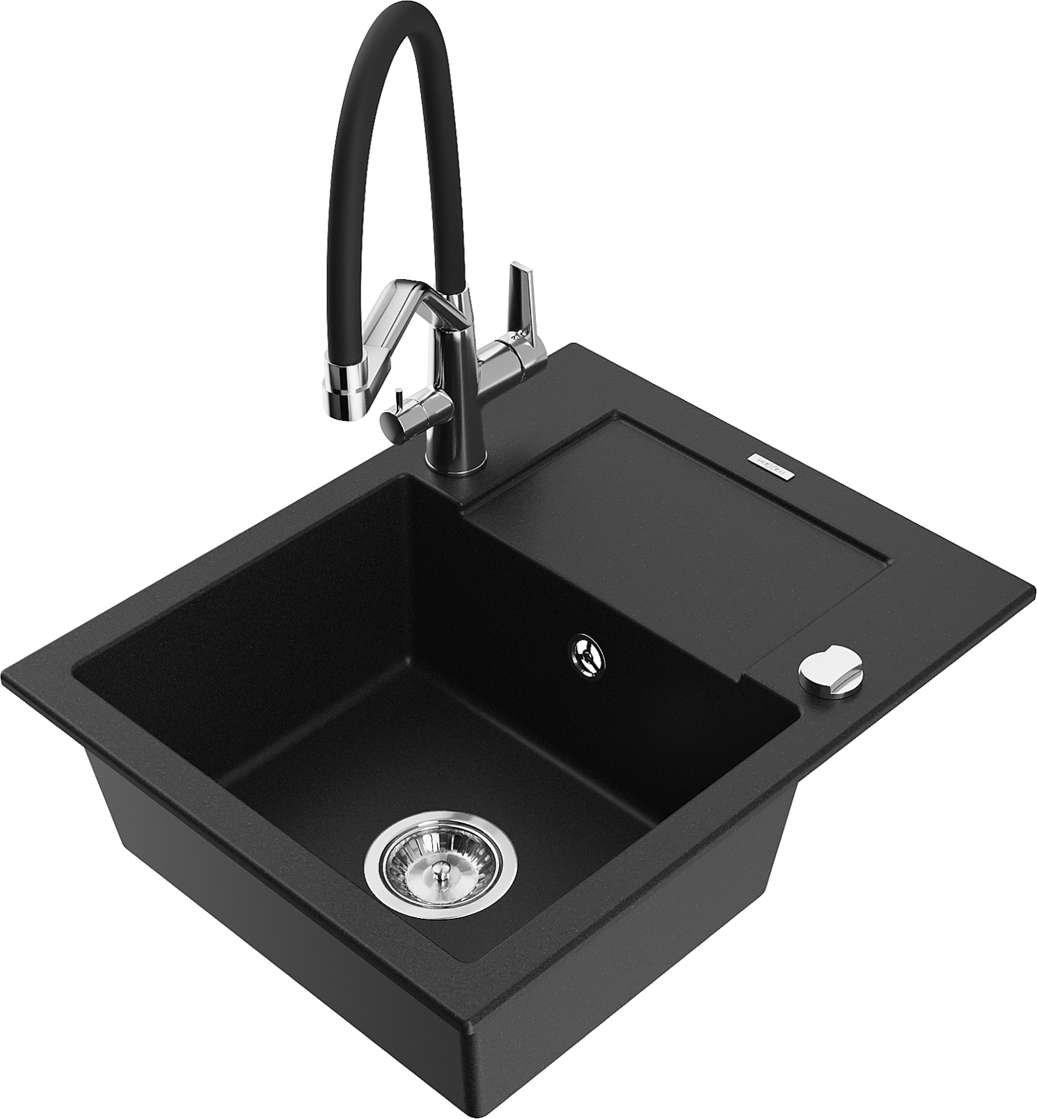 Mexen Enzo lavello in granito a 1 vasca con scolapiatti e rubinetto da cucina Duo, nero - 6506-77-671701-07