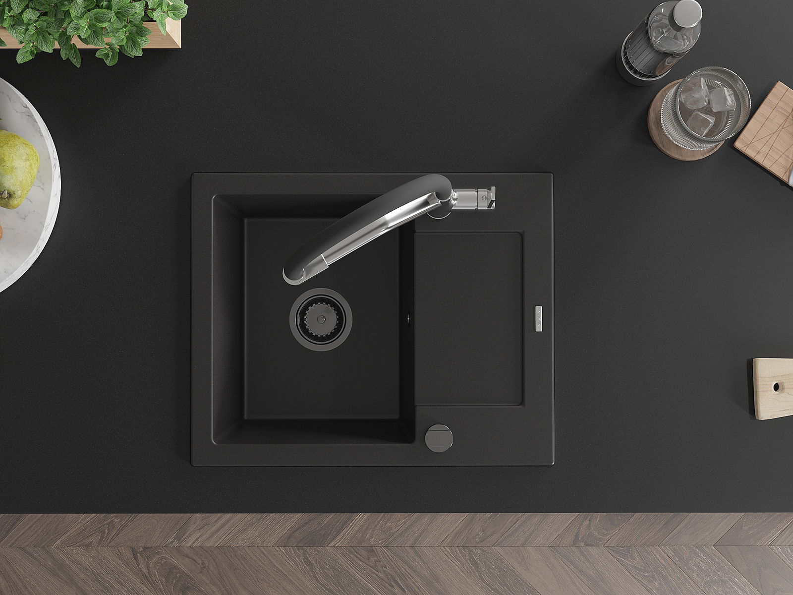 Mexen Enzo lavello da cucina in granito a 1 vasca con sgocciolatoio e rubinetto Duo, nero - 6506-77-671701-07-B