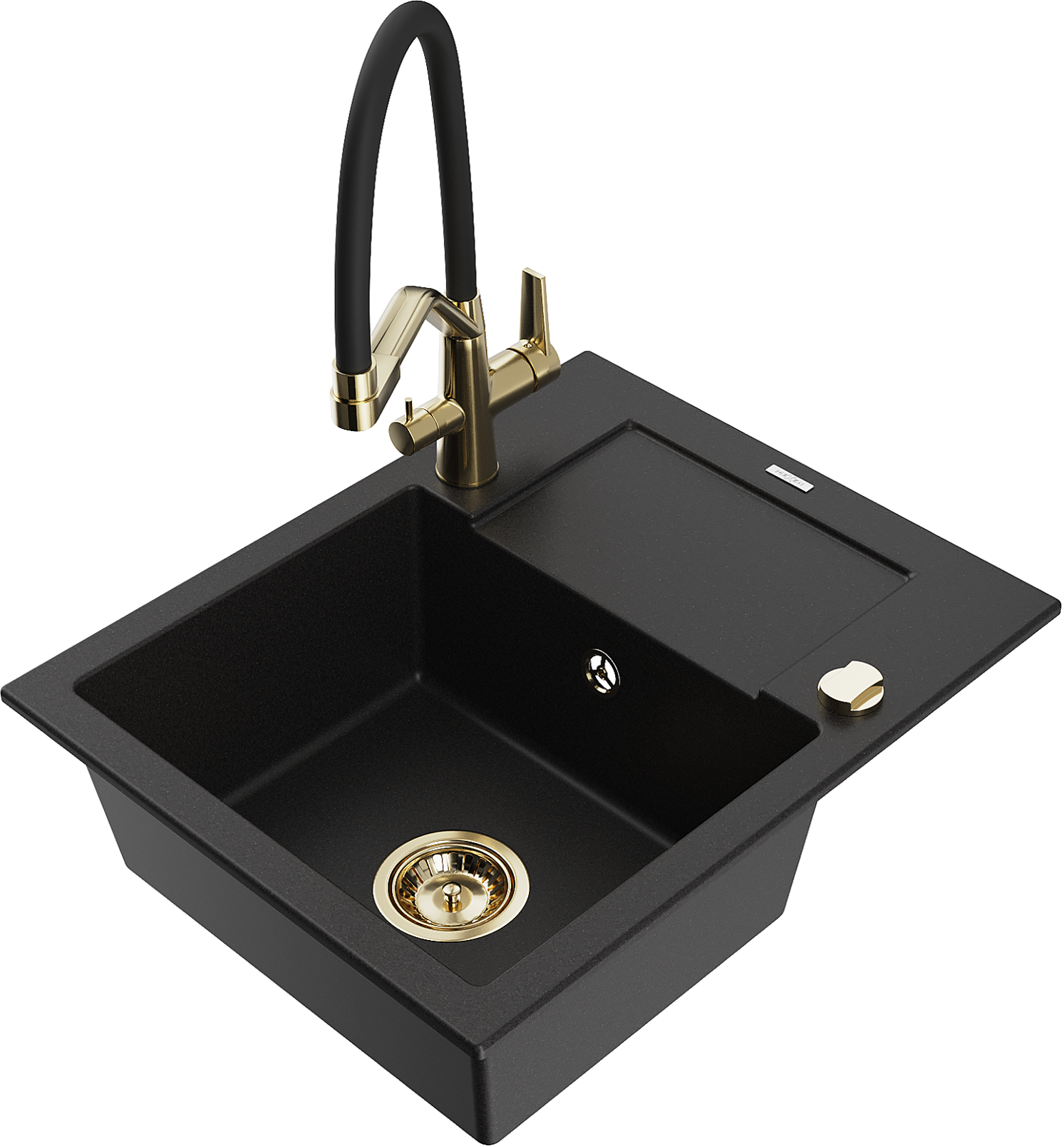 Mexen Enzo lavello da cucina in granito a 1 vasca con scolapiatti e miscelatore Duo, nero - 6506-77-671701-57-G