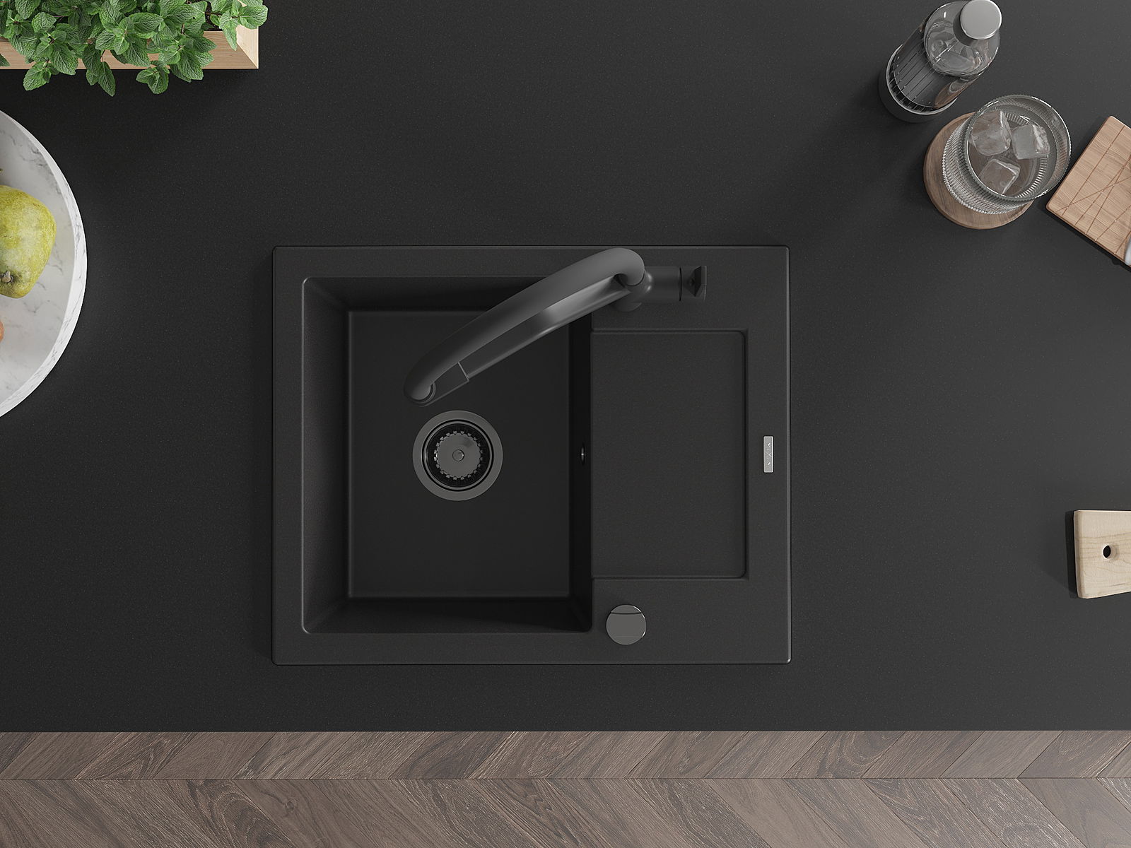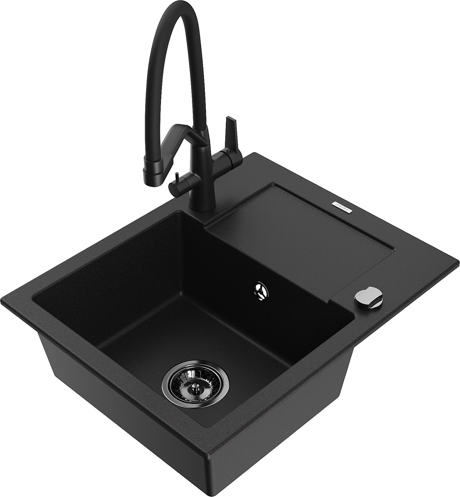 Mexen Enzo lavello da cucina in granito 1-vasca con sgocciolatoio e miscelatore Duo, nero - 6506-77-671701-70-B