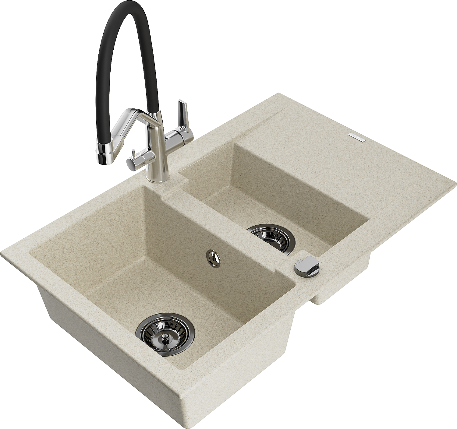 Mexen Gaspar lavello in granito 1,5 vasche con sgocciolatoio e miscelatore Duo, beige - 6507-69-671701-07-B