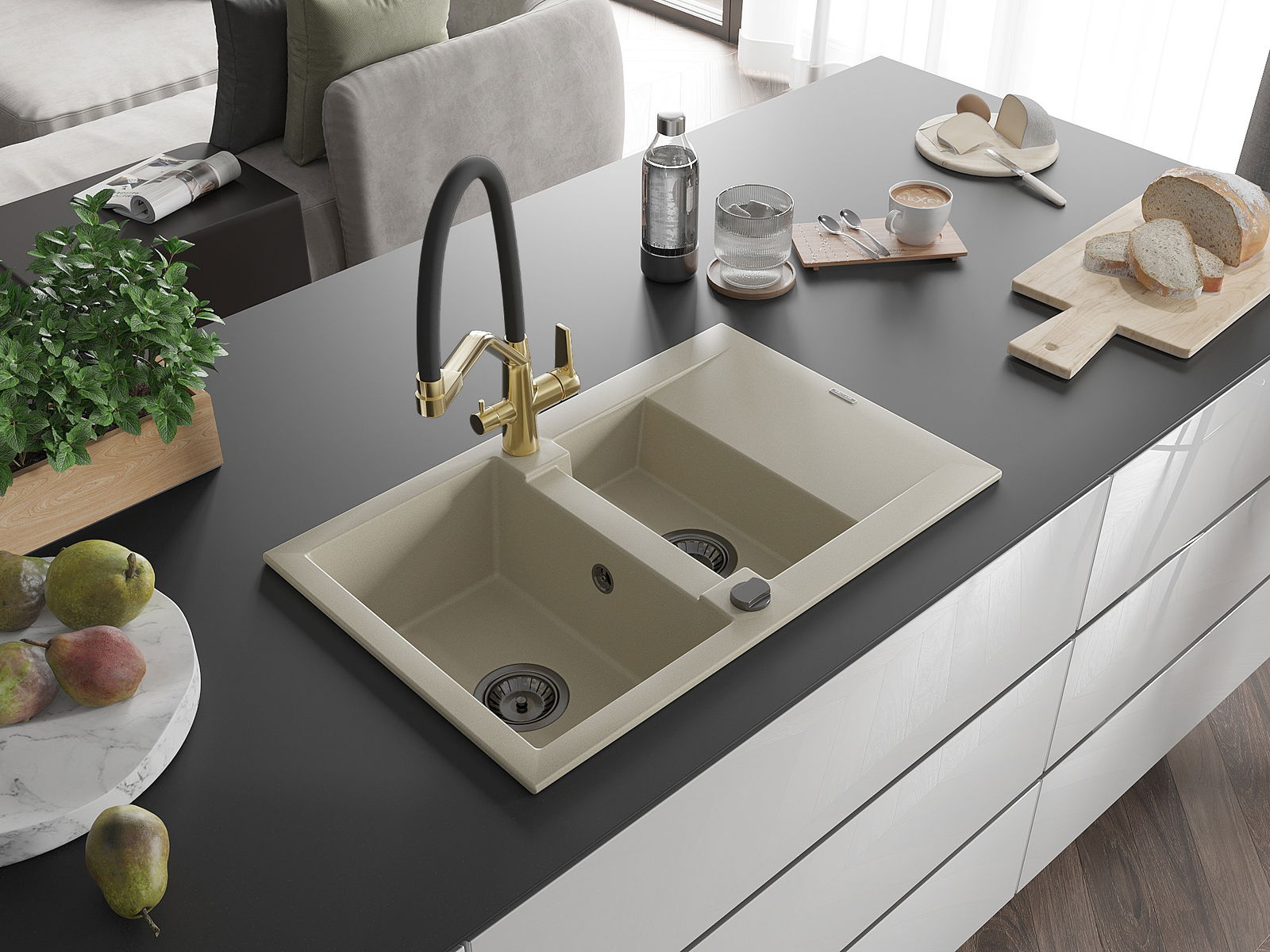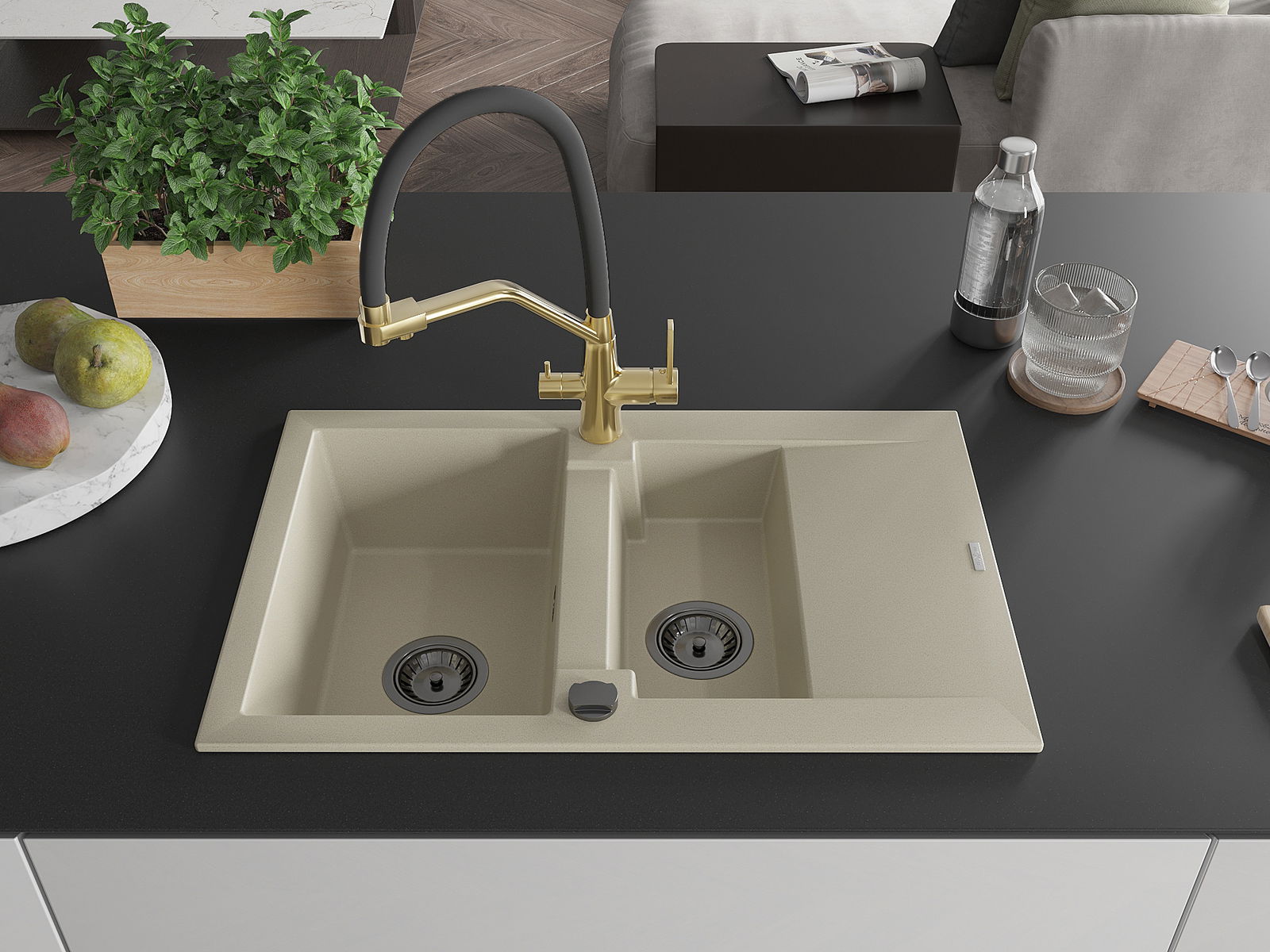 Il lavello è realizzato in granito di alta qualità. Rappresenta un complemento elegante e, soprattutto, pratico per ogni cucina, indipendentemente dal suo stile. L'alta qualità e la durata del granito garantiscono un utilizzo che dura per molti anni.
