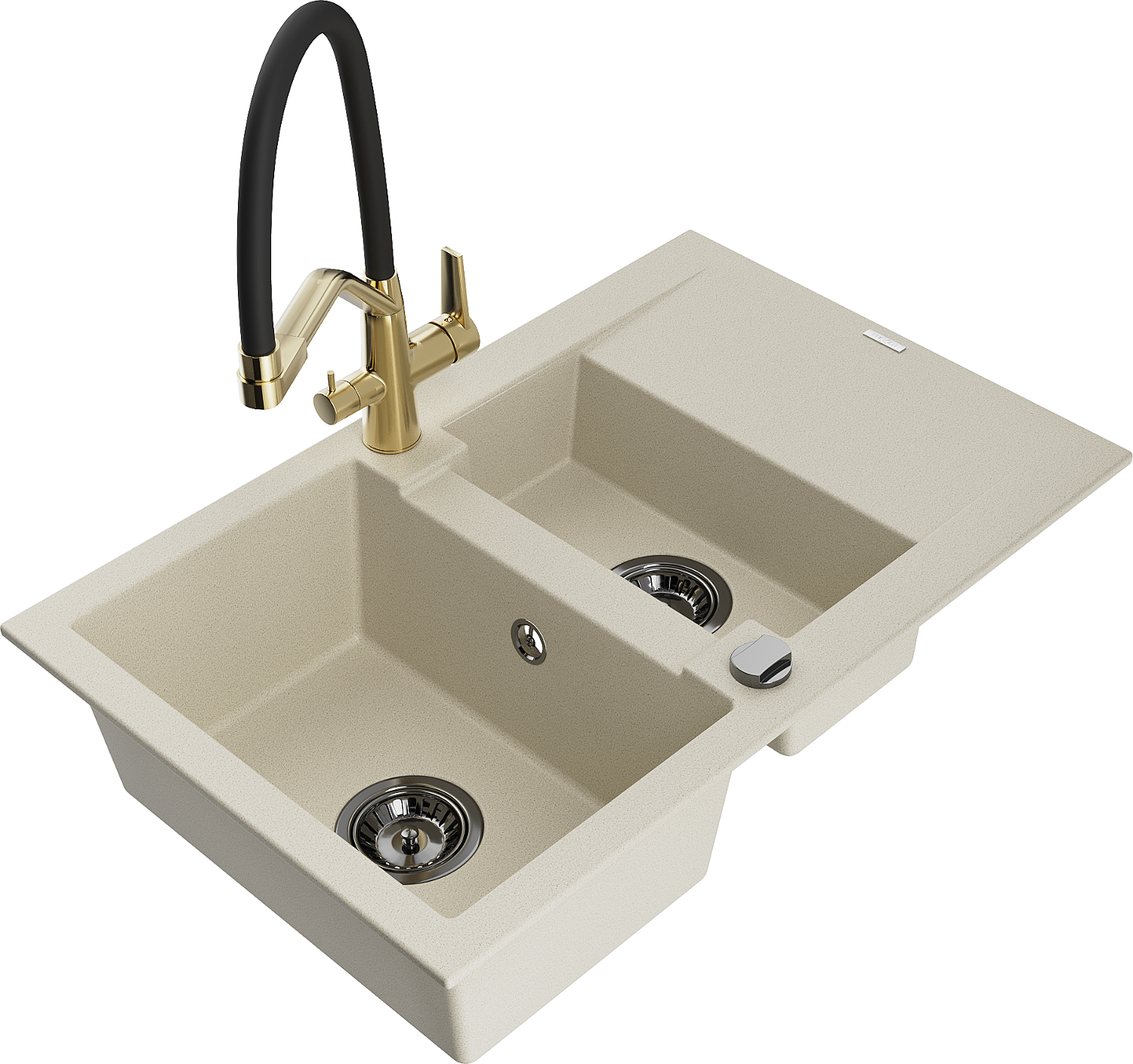 Mexen Gaspar lavello in granito 1,5 vasca con scolapiatti e batteria da cucina Duo, beige - 6507-69-671701-57-B