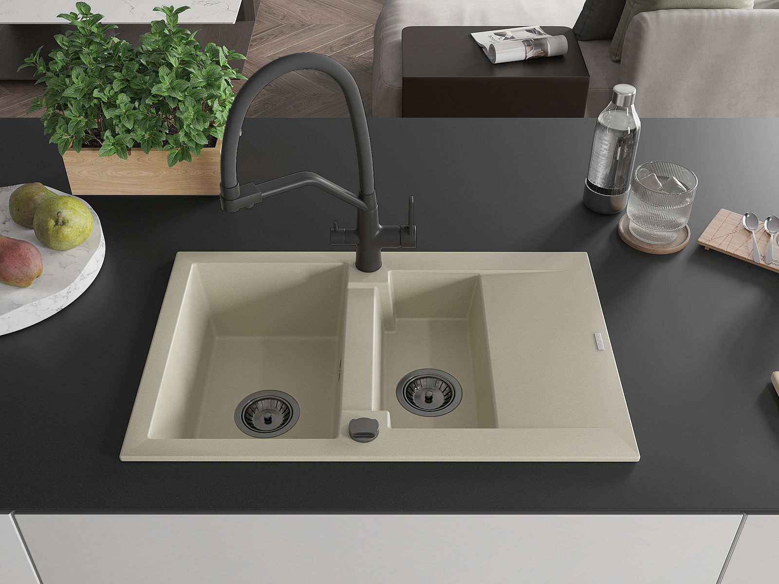 Il lavello è realizzato in granito di alta qualità. Rappresenta un complemento elegante e, soprattutto, pratico per ogni cucina, indipendentemente dal suo stile. L'alta qualità e la durata del granito garantiscono un utilizzo che dura per molti anni.