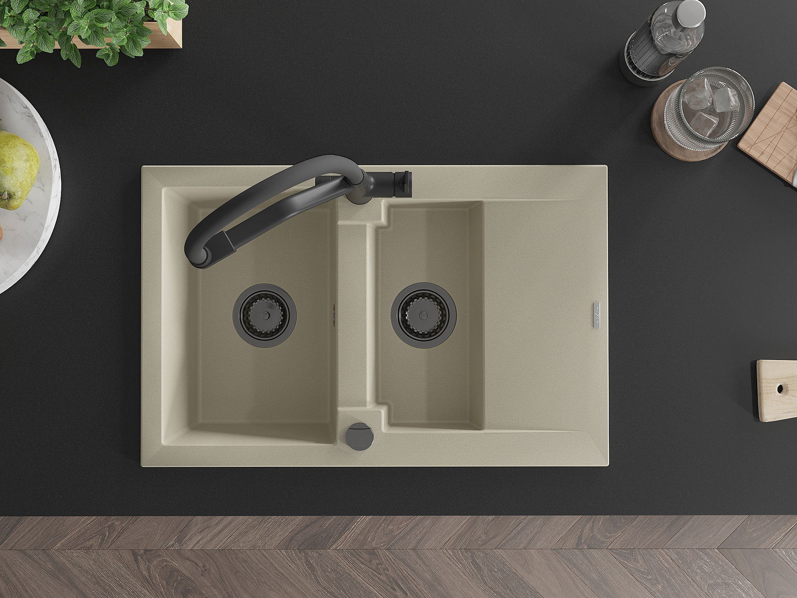 Mexen Gaspar lavello in granito 1,5 vasche con scolapiatti e miscelatore da cucina Duo, beige - 6507-69-671701-70-B