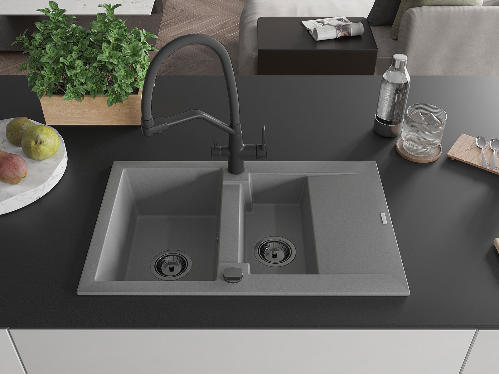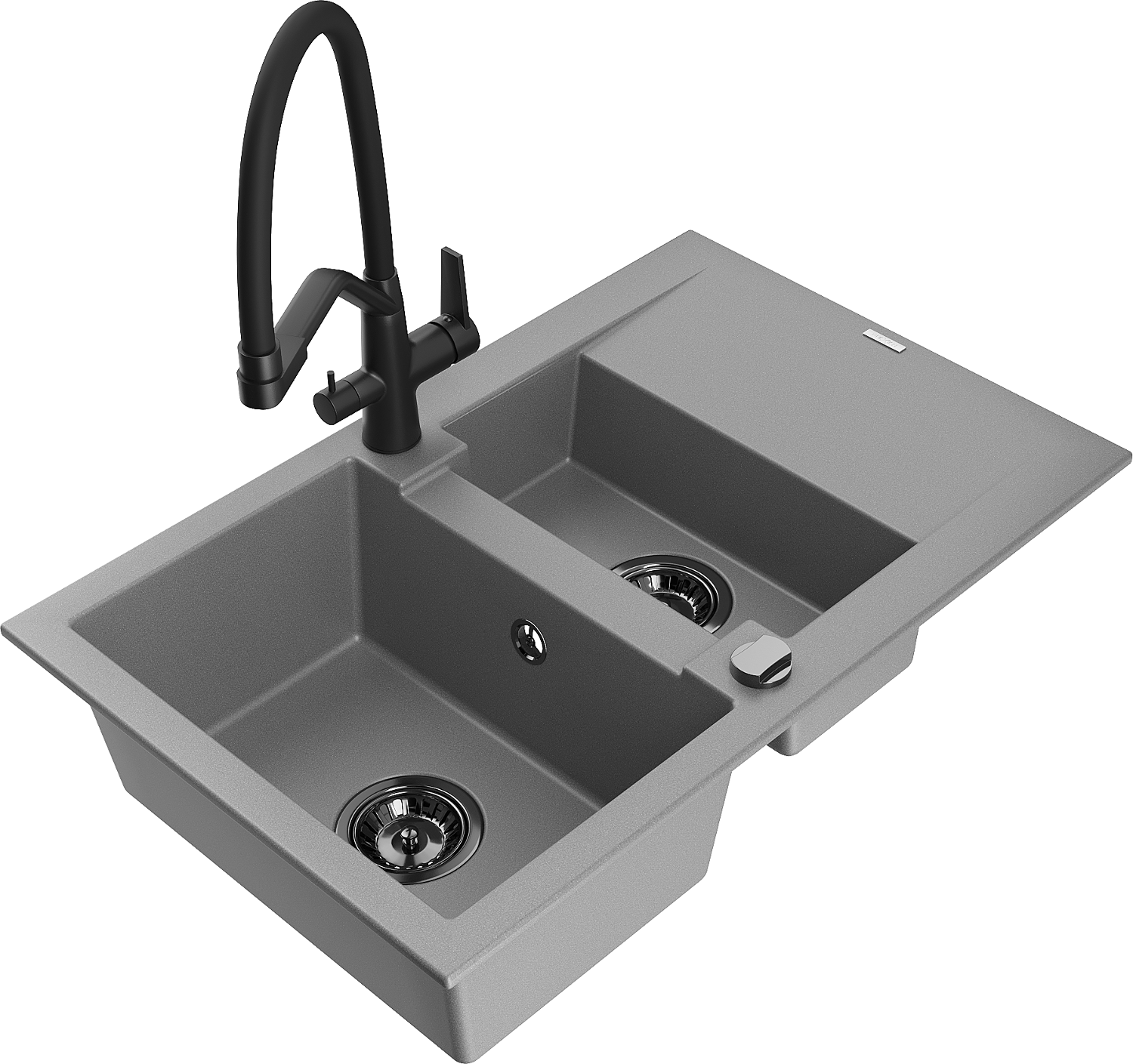 Mexen Gaspar lavello in granito 1,5 vasca con scolapiatti e rubinetto da cucina Duo, grigio - 6507-71-671701-70-B