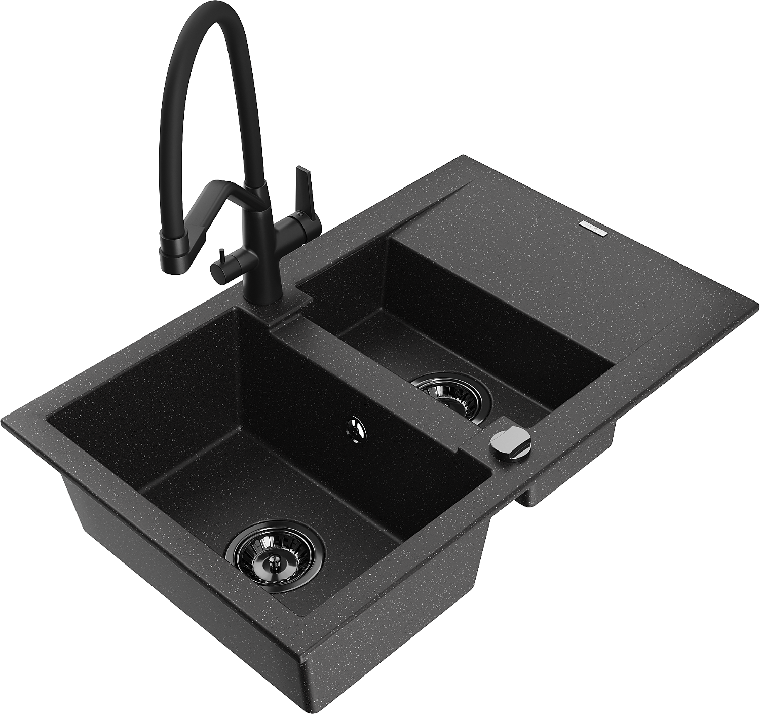 Mexen Gaspar lavello in granito 1,5 vasche con scolapiatti e miscelatore da cucina Duo, nero/argento - 6507-73-671701-70-B