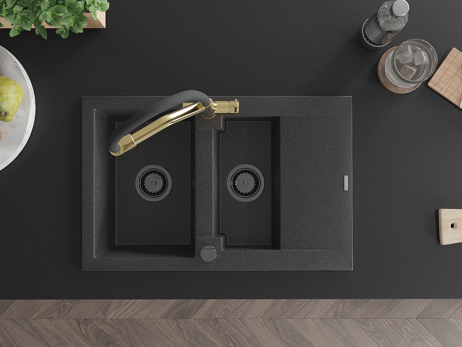 Il lavello è realizzato in granito di alta qualità. Rappresenta un complemento elegante e, soprattutto, pratico per ogni cucina, indipendentemente dal suo stile. L'alta qualità e la durata del granito garantiscono un utilizzo che dura per molti anni.