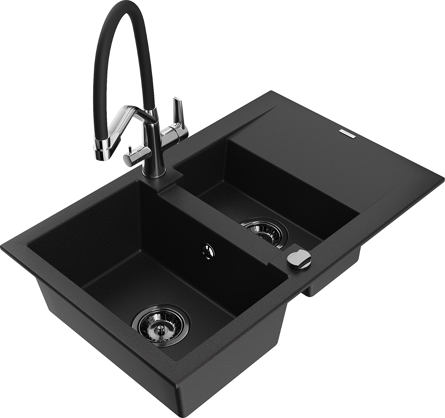 Mexen Gaspar lavello in granito 1,5 vasca con sgocciolatoio e miscelatore Duo, nero - 6507-77-671701-07-B