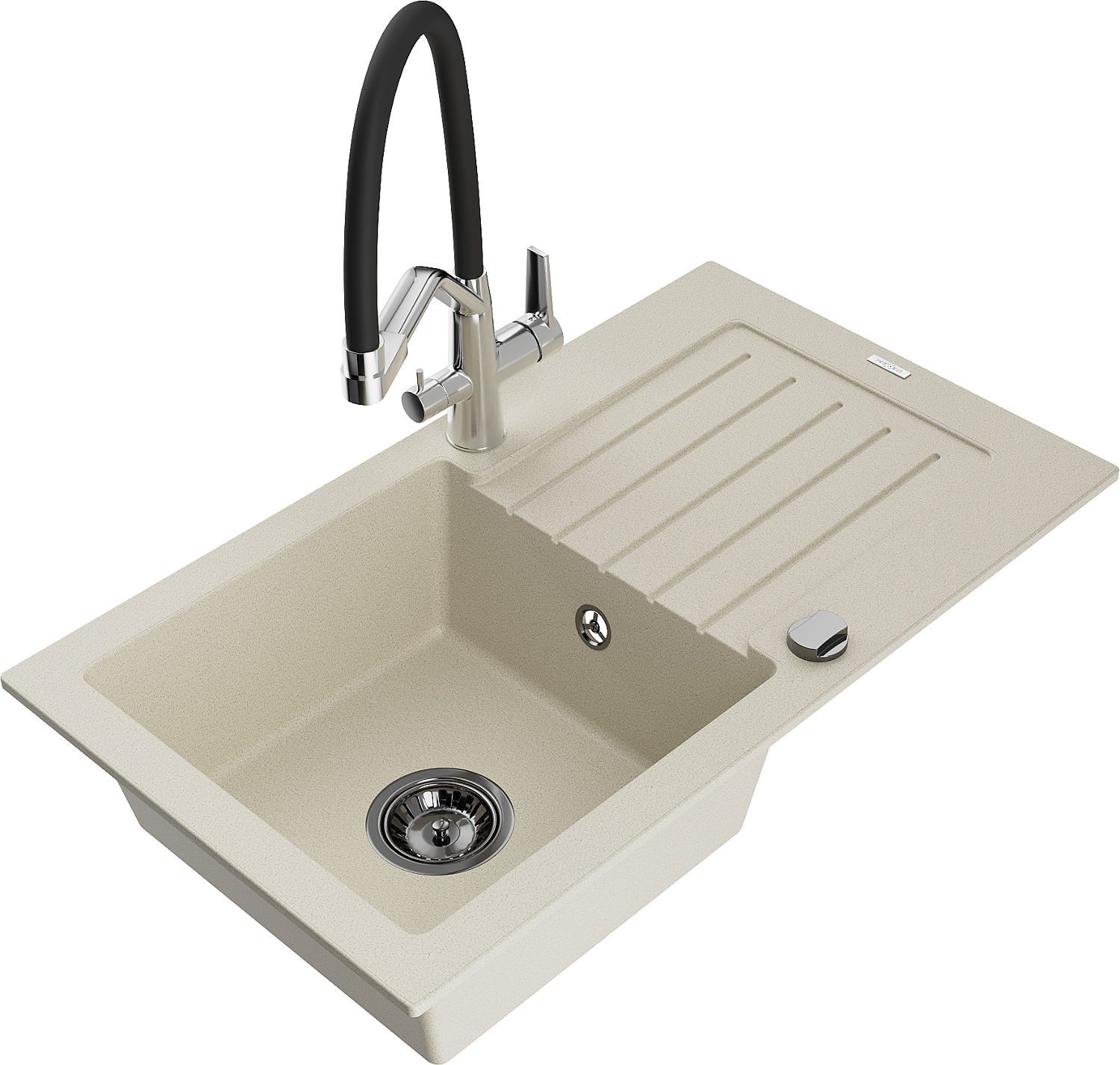 Mexen Pablo lavello in granito con 1 vasca e scolapiatti e miscelatore da cucina Duo, beige - 6510-69-671701-07-B