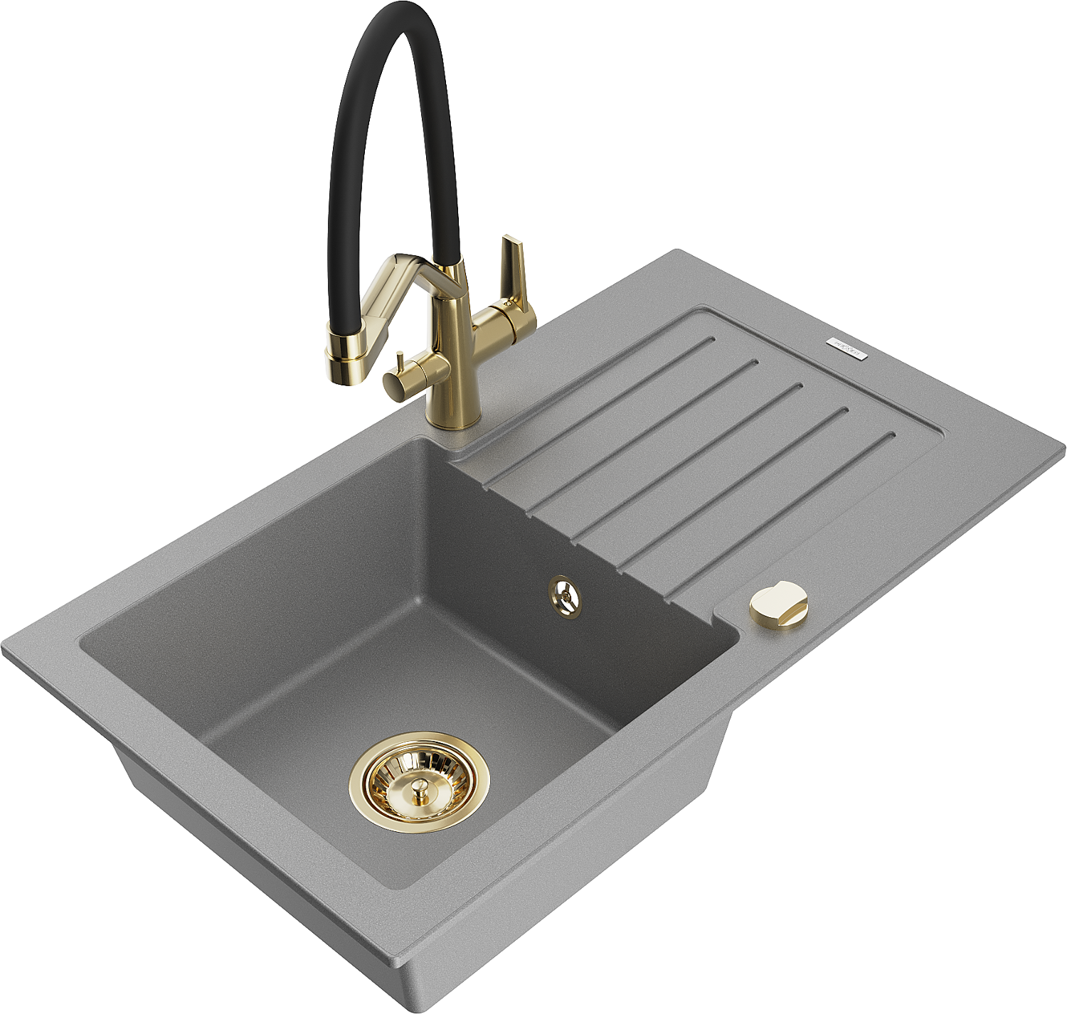 Mexen Pablo lavello in granito a 1 vasca con sgocciolatoio e rubinetto da cucina Duo, grigio - 6510-71-671701-57-G